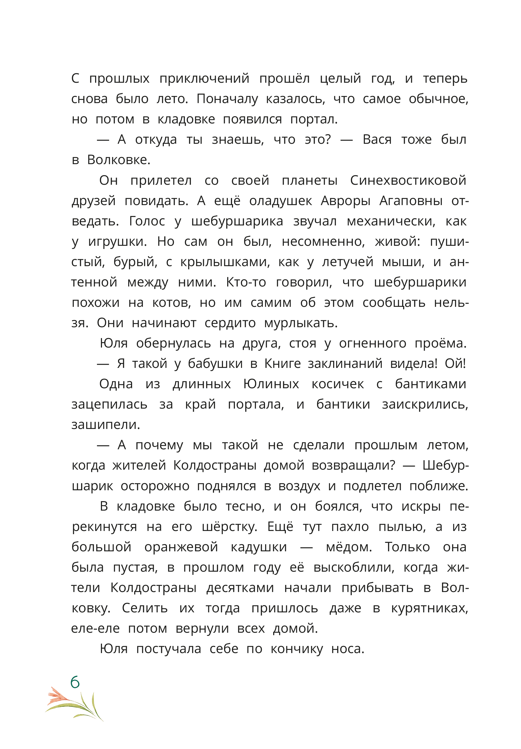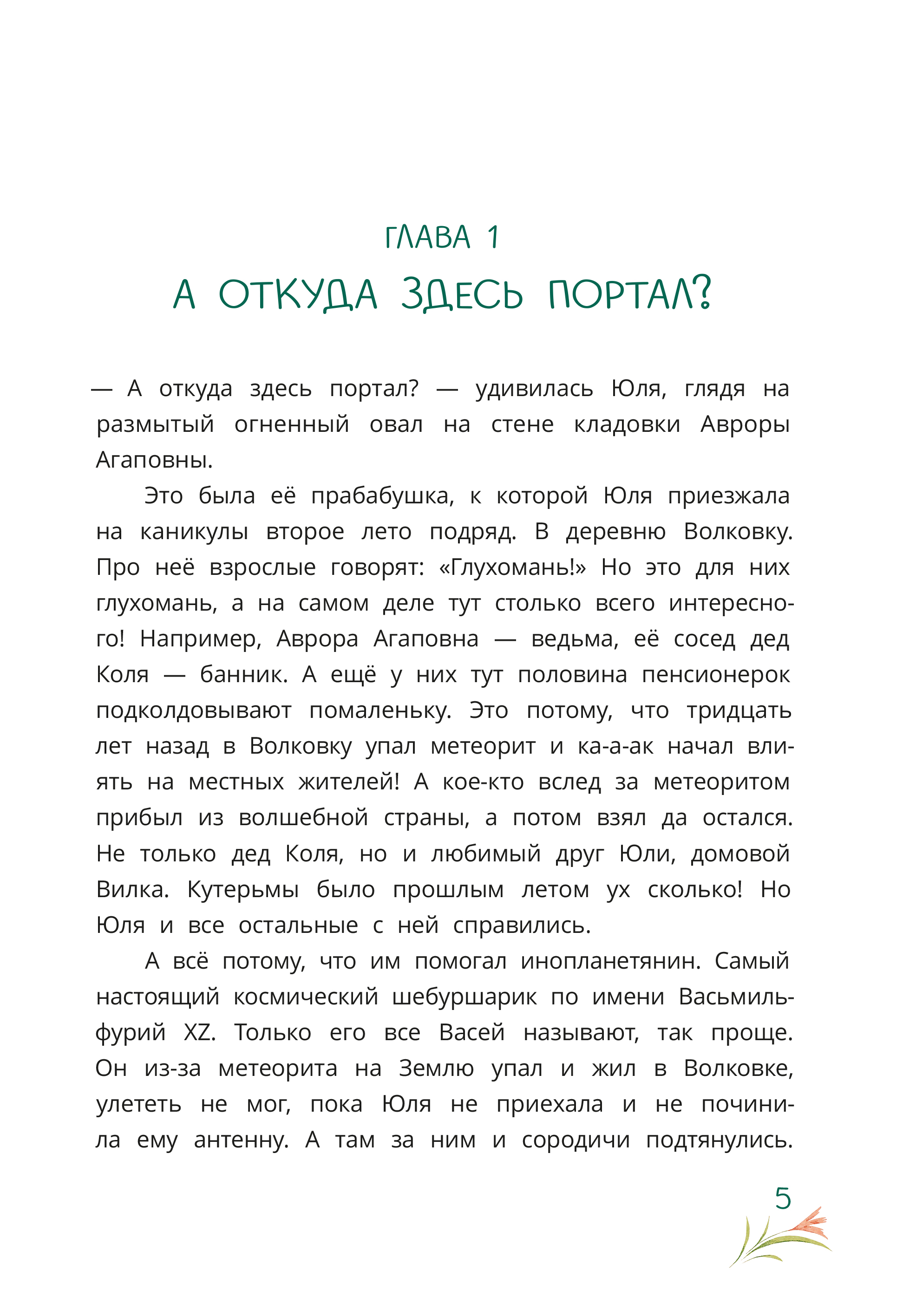 (6+) В деревне Волковке вечно творится не пойми что, особенно в летние каникулы. Девочка Юля так надеялась, что хотя бы это лето выдастся спокойным, но не тут-то было! Вместе со своим пушистым другом, шебуршариком Васей с планеты Синехвостиковая, Юля попадает в волшебный портал, прямиком ведущий в колдовскую страну. Поначалу там было весело — кикиморы, богатыри да Василиса Премудрая, а потом как закрутилось-завертелось! А тут ещё и портал вдруг взял да исчез. Чтобы вернуться домой, Васе с Юлей нужно победить злого колдуна. Вот только не побеждается никак этот колдун, ох не побеждается...