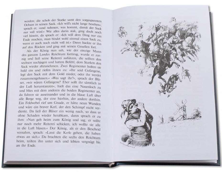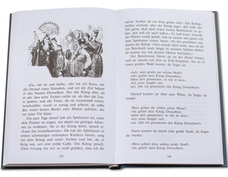 (12+) Сказки братьев Гримм публикуются в соответствии с правилами современной немецкой орфографии (2004-2006). Русский перевод сделан на рубеже XIX и XX веков детским писателем, издателем и редактором А.А.Фёдоровым-Давыдовым (1875-1936). В аннотации к дореволюционному тому говорится: "В издание входят сказки и детские легенды, представляющие из себя, за небольшим исключением, почти буквальный перевод немецкого подлинника". В тексте сохранены имена персонажей, которые сегодня покажутся читателю непривычными: Белоснеженка, С-Пальчик, Глупышок. Для среднего школьного возраста.