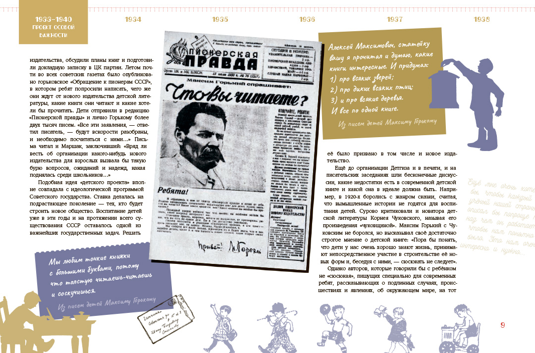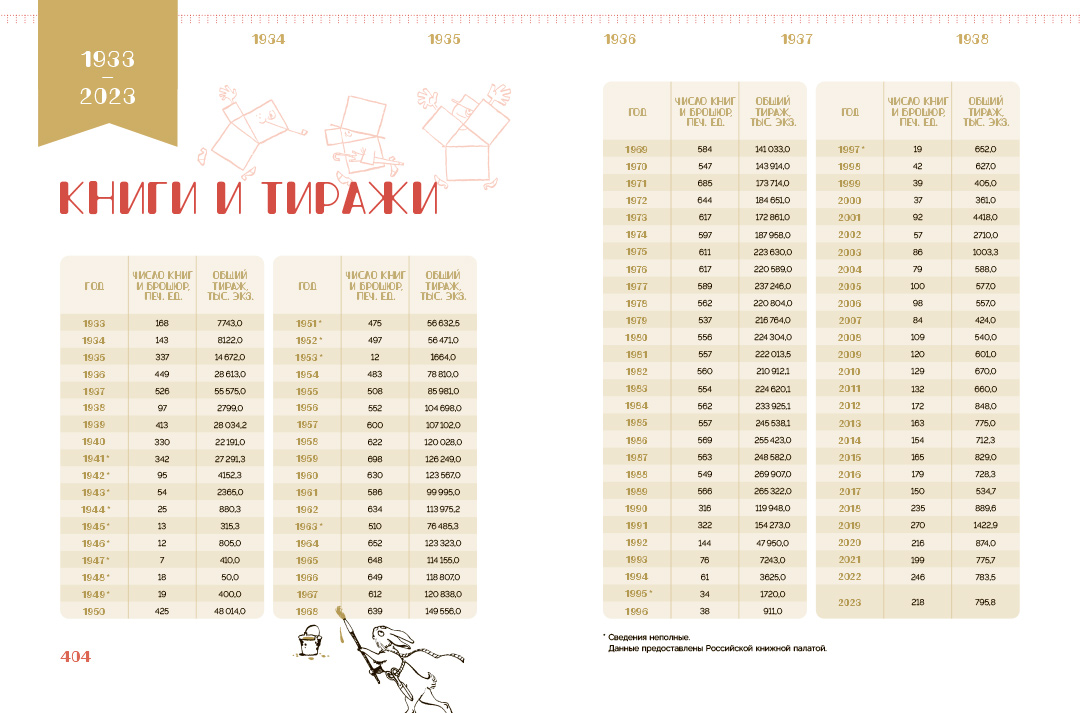 (12+) Около 30 тысяч изданий общим тиражом более 7 миллиардов экземпляров! Таков грандиозный результат работы издательства «Детская литература» за 90 лет. Для юбилейного проекта из огромного количества книг выбрано всего лишь 185. Казалось бы, невероятно мало, но на каждой стоят имена писателей и художников — людей, которые вместе с сотрудниками издательства в прямом смысле формировали культуру детского книгоиздания и вообще детскую литературу целой страны. Понять, как же это происходило, как трудилась «Детская литература» в разные годы, как придумывали, спорили, творили — помогут исторические очерки этой книги. К 90-летнему юбилею издательства «Детская литература».