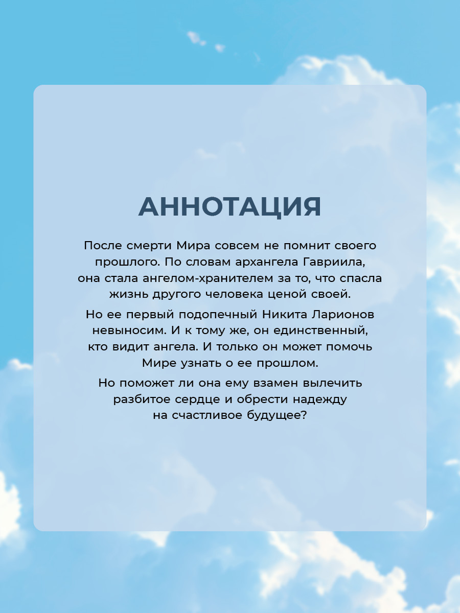 Но ее первый подопечный Никита Ларионов невыносим. И к тому же, он единственный, кто видит ангела. И только он может помочь Мире узнать о ее прошлом.
