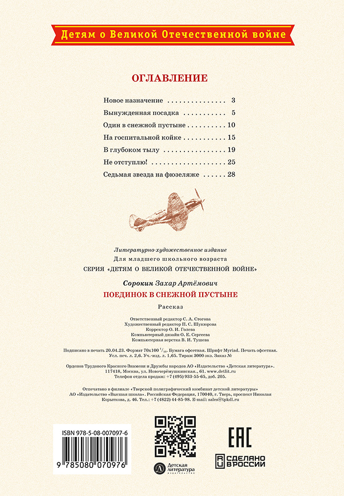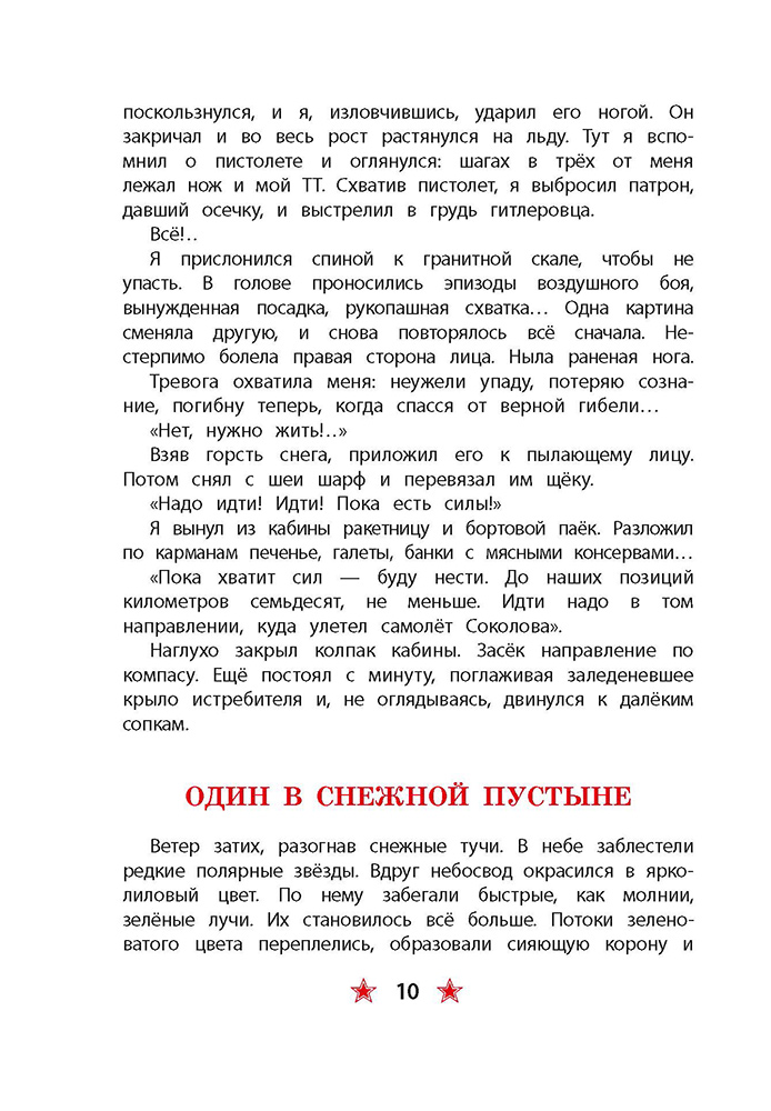 (6+) Великая Отечественная война. Авиация обороняет подступы к Мурманску. В одном из воздушных боёв фашистский «мессер» сбил самолёт З. А. Сорокина. Несколько дней советский лётчик добирался до своих… Приговор врачей неутешительный: обморожение ступней. Ампутация. И всё же сила воли и желание летать и сражаться помогают ему вернуться в строй и продолжать борьбу. Для младшего школьного возраста.
