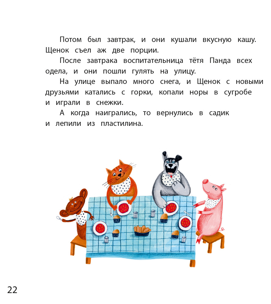 (3+) Маленький Щенок первый раз собирается в детский садик. Конечно, он переживает, как будет переживать любой малыш, сталкивающийся с новым опытом! История Щенка поможет вашему ребенку перестать волноваться, ожидая неизвестности. Эта книжка подскажет ему, как себя вести в незнакомой обстановке. С этой книжкой можно играть: сделать театральную постановку, разобрать ее по ролям, а еще ее можно подарить тем, кто собирается идти в детский сад!