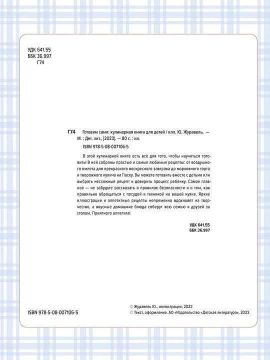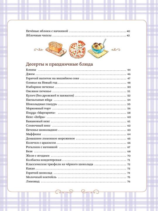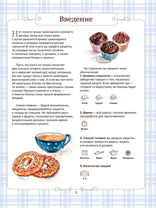 (12+) В этой кулинарной книге есть всё для того, чтобы научиться готовить! В ней собраны простые и самые любимые рецепты: от воздушного омлета для прекрасного воскресного завтрака до морковного торта и творожного кулича на Пасху. Вы можете готовить вместе с детьми или выбрать несложный рецепт и доверить процесс ребёнку. Самое главное — не забудьте рассказать о правилах безопасности и о том, как правильно обращаться с посудой и техникой на вашей кухне. Яркие иллюстрации и аппетитные рецепты непременно вдохновят на творчество, а вкусные домашние блюда соберут всю семью и друзей за столом. Приятного аппетита! Для среднего школьного возраста.