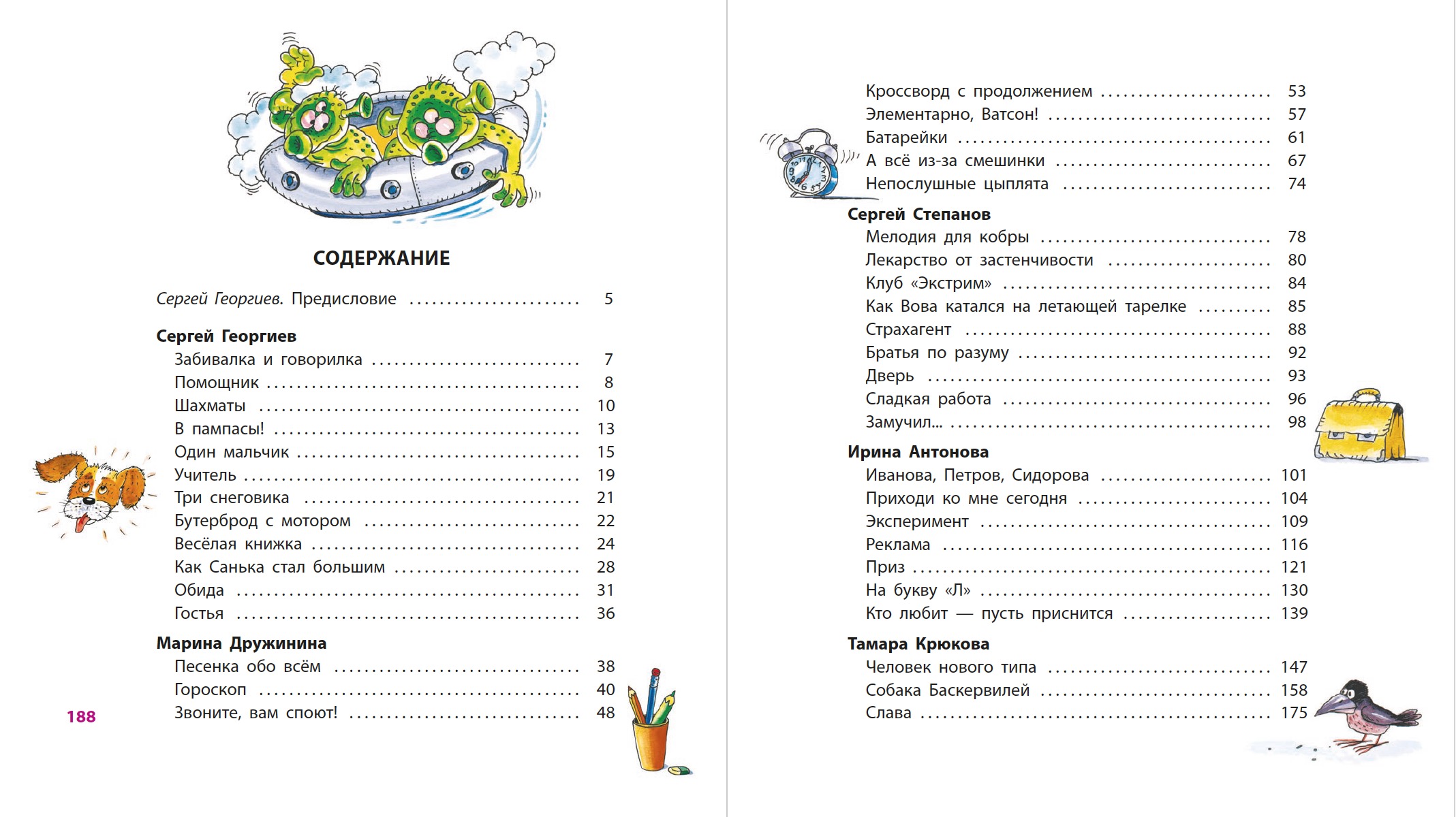 (6+) В книгу входят весёлые рассказы современных детских писателей — Сергея Георгиева, Марины Дружининой, Сергея Степанова, Ирины Антоновой, Тамары Крюковой — о школе, семье, дружбе, играх и увлечениях. Все произведения учат доброте, чуткости, отзывчивости, написаны с тонким юмором и пониманием мира ребёнка. Многие из них легли в основу сюжетов киножурнала "Ералаш". Книга для внеклассного чтения. Для младшего школьного возраста.