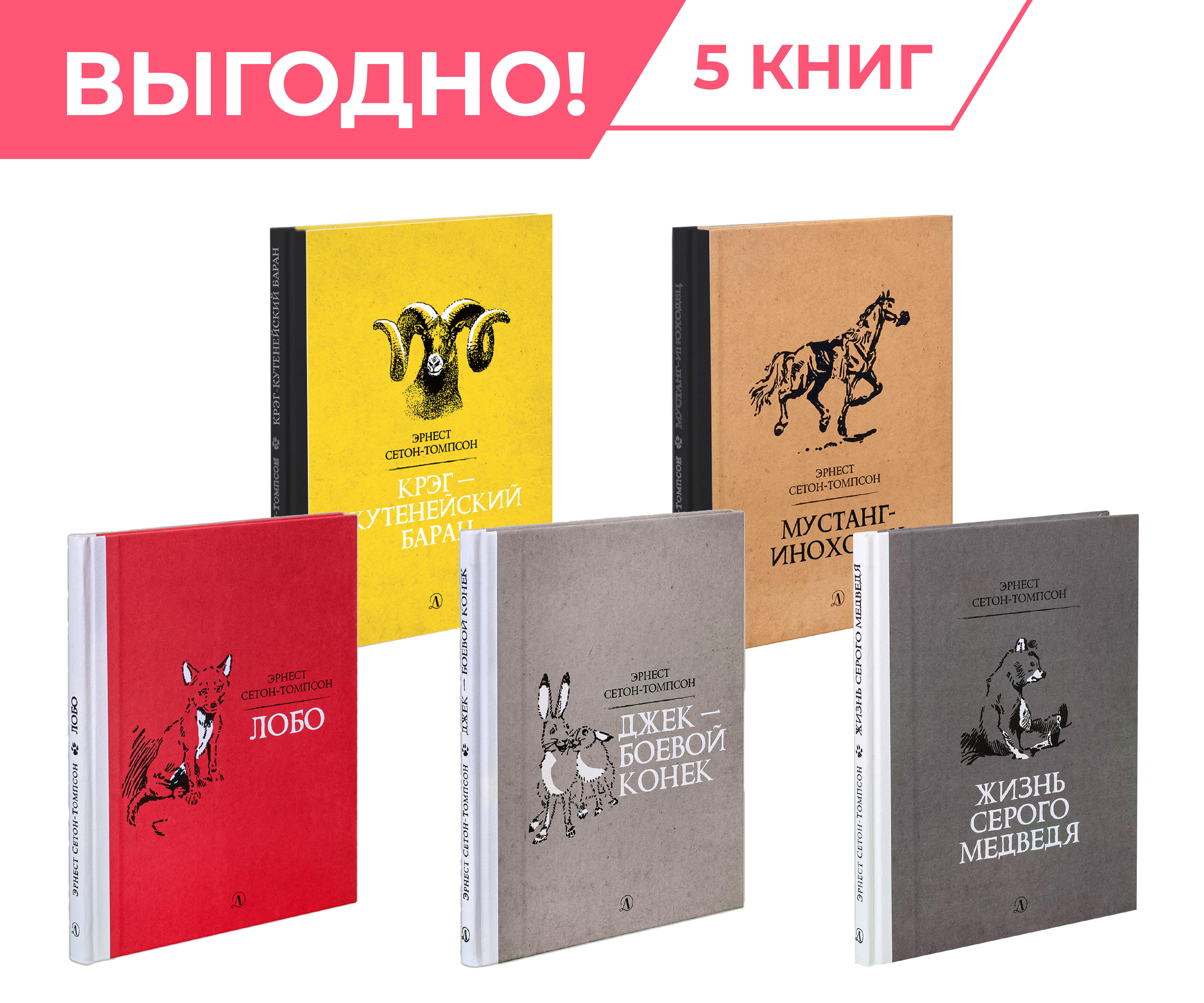 (12+) «Рассказы о животных» канадского писателя и художника Эрнеста Сетона-Томпсона известны и любимы несколькими поколениями читателей. В комплект входят 5 книг: "Крэг-кутенейский баран", "Мустанг-иноходец", "Лобо", "Жизнь серого медведя" и "Джек-боевой Конек".