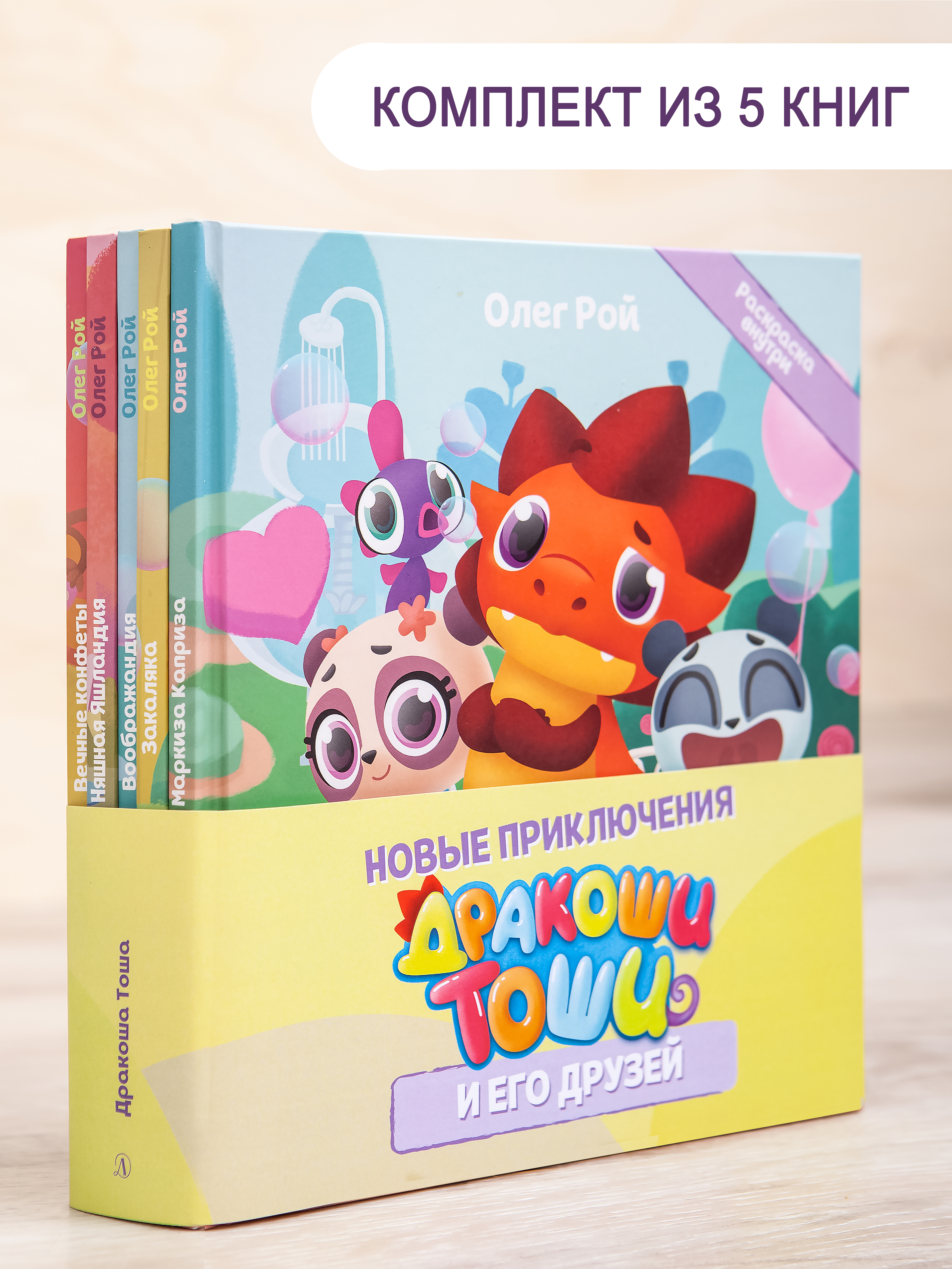 (0+) В комплект "Новые приключения Дракоши Тоши и его друзей" входят пять веселых историй, которые учат правильно вести себя, помогают преодолеть страх и победить собственные капризы: "Маркиза Каприза", "Вечные конфеты", "Воображандия", "Няшная Яшландия" и "Закаляка".
