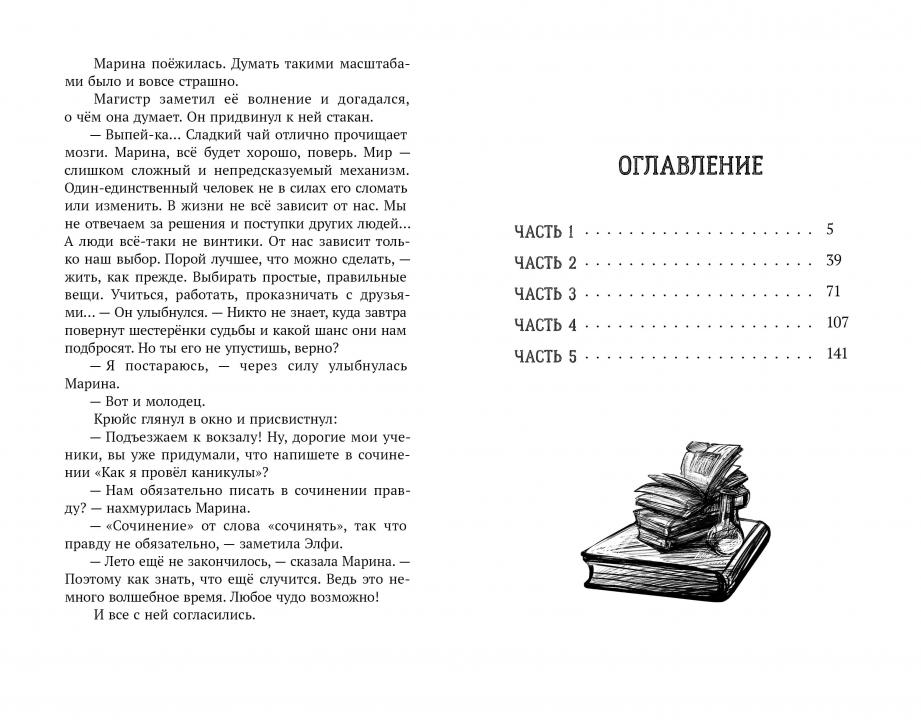 (12+) Как же обидно, что летние каникулы придётся провести в глуши — на свиноферме строгой и властной тёти! Но оказалось, что даже в скучной деревушке Марину Мираколо и её друзей ожидают захватывающие приключения. Более того — им вновь предстоит встретиться со злодеем Химерасом. Никак не хочет преступник оставить Марину в покое. Зная о её необычном даре — девочка умеет управлять механизмами, — Химерас имеет на неё большие планы. Придётся Марине, Яну и Элфи изучить заброшенный и пользующийся дурной славой «Приют книголюба», разгадать все его тайны и добыть для злодея дневник прославленного учёного. И пусть Химераса опять не поймают и не передадут в руки правосудия, кое-какие сюрпризы ребята для него подготовили. Правда, злодею ещё предстоит о них узнать.