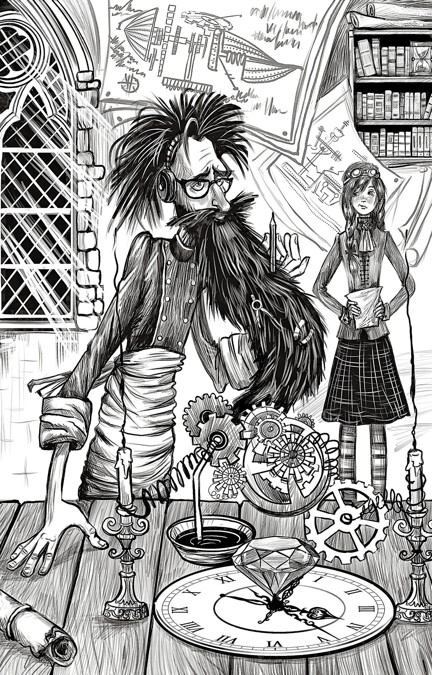 - Эффектные чёрно-белые иллюстрации, продолжающий создавать визуальный образ увлекательного мира, в котором сосуществуют магия и наука.