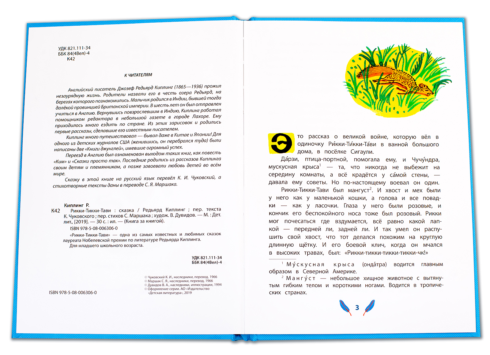 (6+) "Рикки-Тикки-Тави" - одна из самых известных и любимых сказок лауреата Нобелевской премии по литературе Редьярда Киплинга. Для младшего школьного возраста.