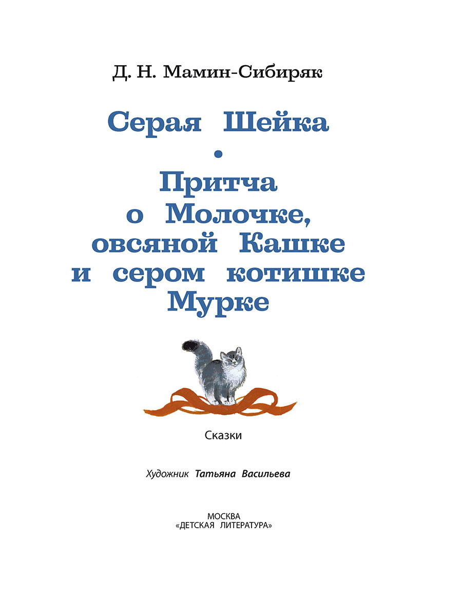 (6+) В книжку вошли две замечательные сказки Д. Н. Мамина-Сибиряка: «Серая Шейка» и «Притча о Молочке, овсяной Кашке и сером котишке Мурке» из «Алёнушкиных сказок». Для младшего школьного возраста.