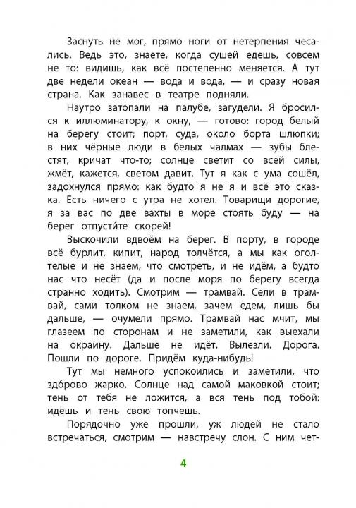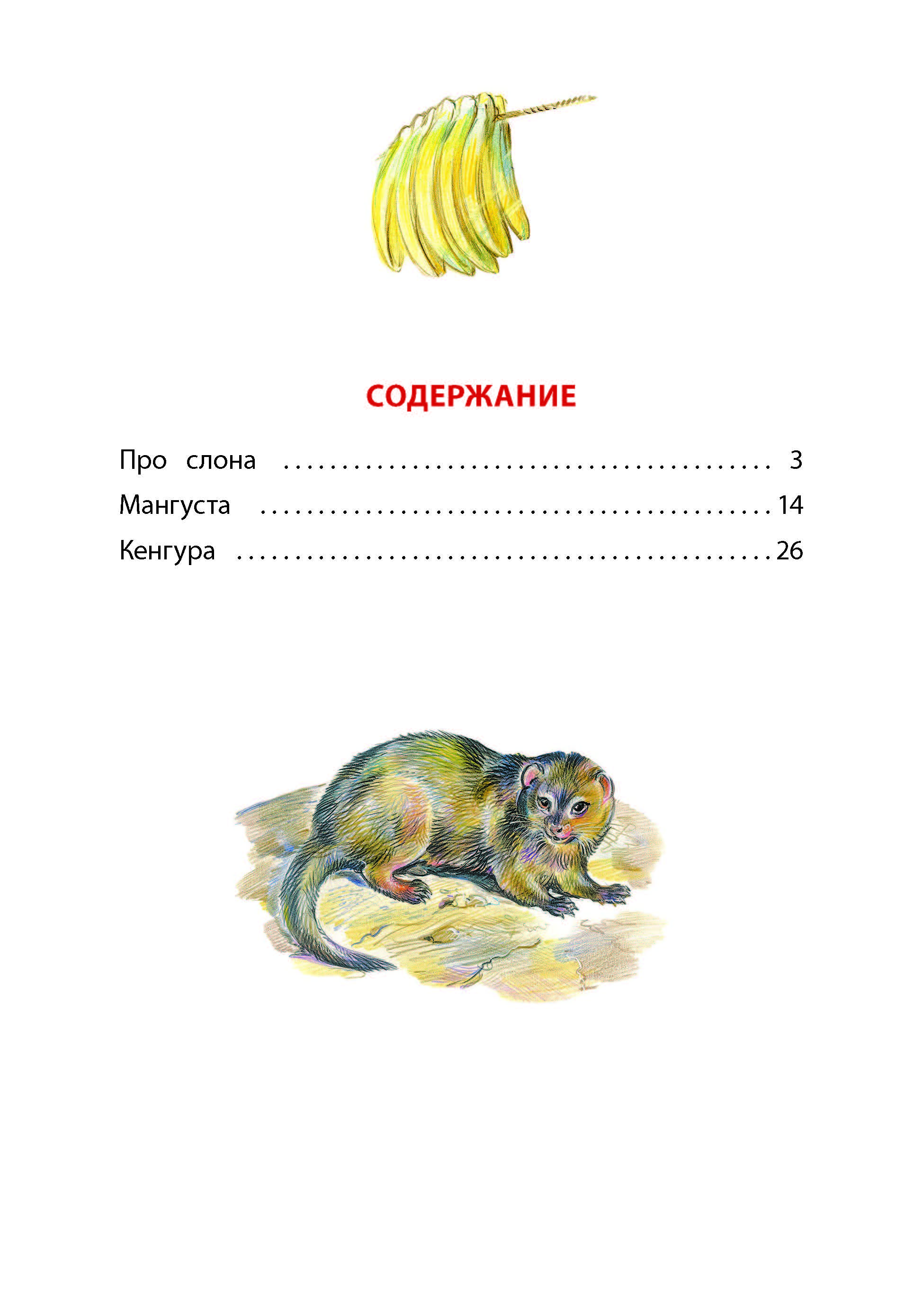 (6+) Рассказы известного русского писателя о животных, обитающих в жарких странах и на далёких континентах, — слонах, мангустах и кенгуру. Для младшего школьного возраста.