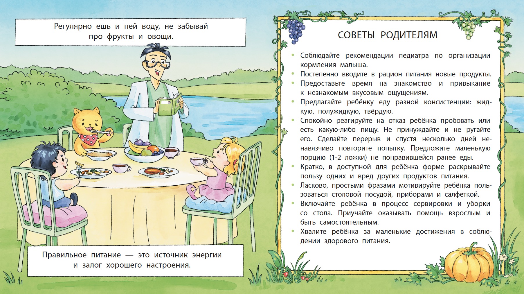 (0+) "Пора за стол" - книга серии "Азбука профессора ЗОЖ", которая поможет родителям правильно организовывать процесс питания ребёнка раннего возраста и привить привычку есть полезные для здоровья продукты.