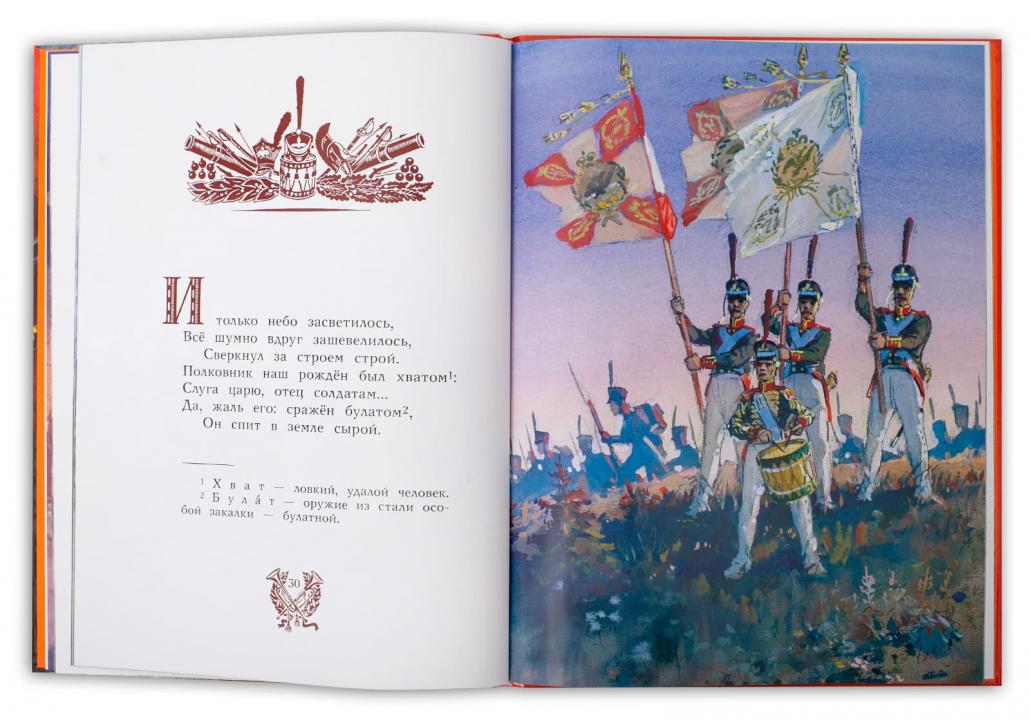 (6+) Известное стихотворение Михаила Юрьевича Лермонтова о знаменитом сражении Отечественной войны 1812 года с иллюстрациями выдающегося художника Владимира Гавриловича Шевченко, который сумел передать масштаб битвы, изобразить исторически верное расположение участников на Бородинском поле, соблюсти все детали вооружения, амуниции и обмундирования войск. Издание посвящено 100-летию со дня рождения художника. Для младшего школьного возраста.