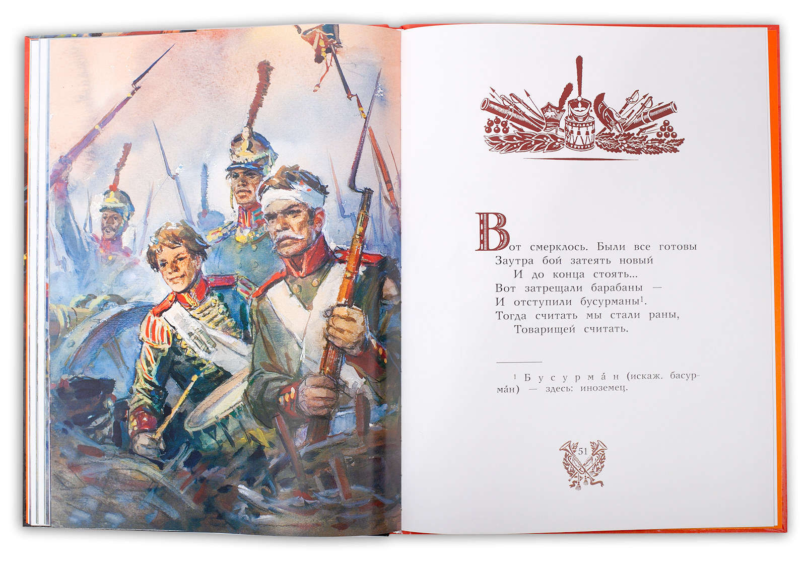 (6+) Известное стихотворение Михаила Юрьевича Лермонтова о знаменитом сражении Отечественной войны 1812 года с иллюстрациями выдающегося художника Владимира Гавриловича Шевченко, который сумел передать масштаб битвы, изобразить исторически верное расположение участников на Бородинском поле, соблюсти все детали вооружения, амуниции и обмундирования войск. Издание посвящено 100-летию со дня рождения художника. Для младшего школьного возраста.