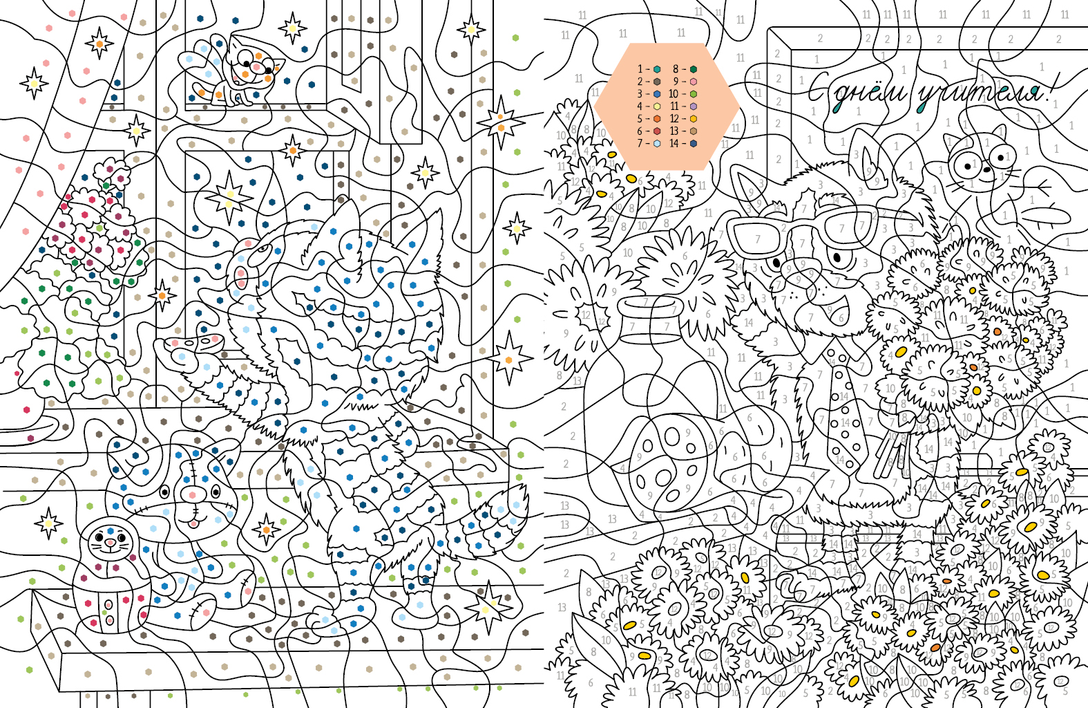 2. Развитие воображения и фантазии: раскраски по номерам, буквам и значкам.
