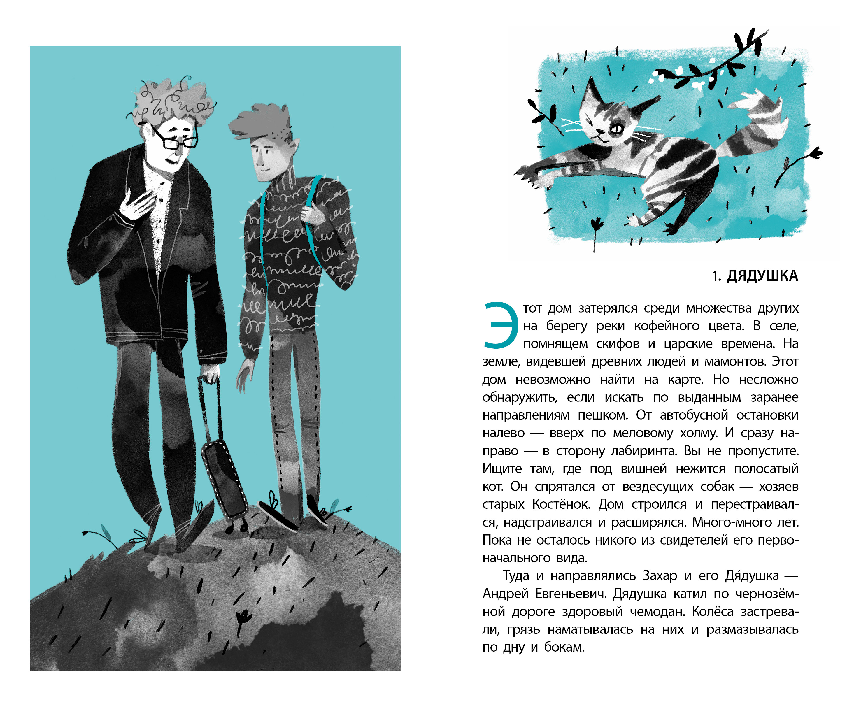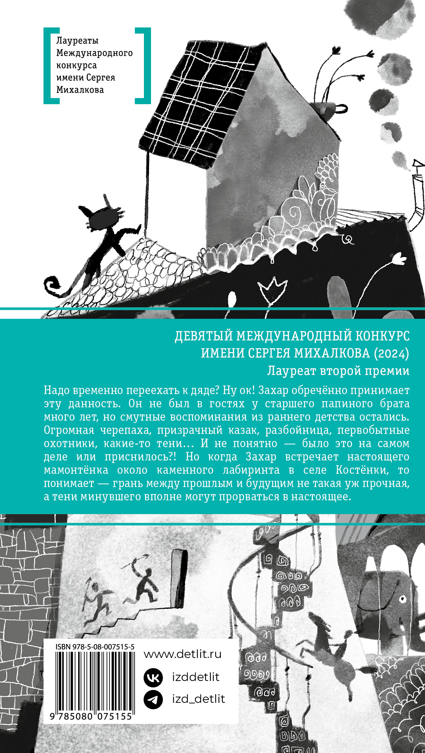 (12+) Захар временно, из-за здоровья, переехал к своему Дядушке, старшему брату папы, в село Костёнки. Но чем заняться в деревне? В городе у него была музыкальная группа, кружки, друзья, а здесь… Здесь странное, похожее на лего-домик жилище Дядушки, гигантская черепаха, свободно бродящая по всем комнатам, а ещё… Ещё в Костёнках есть знаменитый лабиринт времён неолита и тени, которые тот выбрасывает из прошлого в наше время. Захар встречает цыганский табор, белогвардейского офицера, опасную разбойницу Варвару, которая почему- то ненавидит всю его семью, первобытную женщину Наденьку и удивительное существо — мамонтёнка Добрыню, которого притянул из прошлого он сам, Захар! И всё бы хорошо, но лабиринт и музей, в котором работает Дядушка, хотят снести и построить на их месте коттеджный поселок! Можно ли противостоять инвесторам, когда тебя поддерживают только тени лабиринта и одноклассники? Для среднего и старшего школьного возраста.