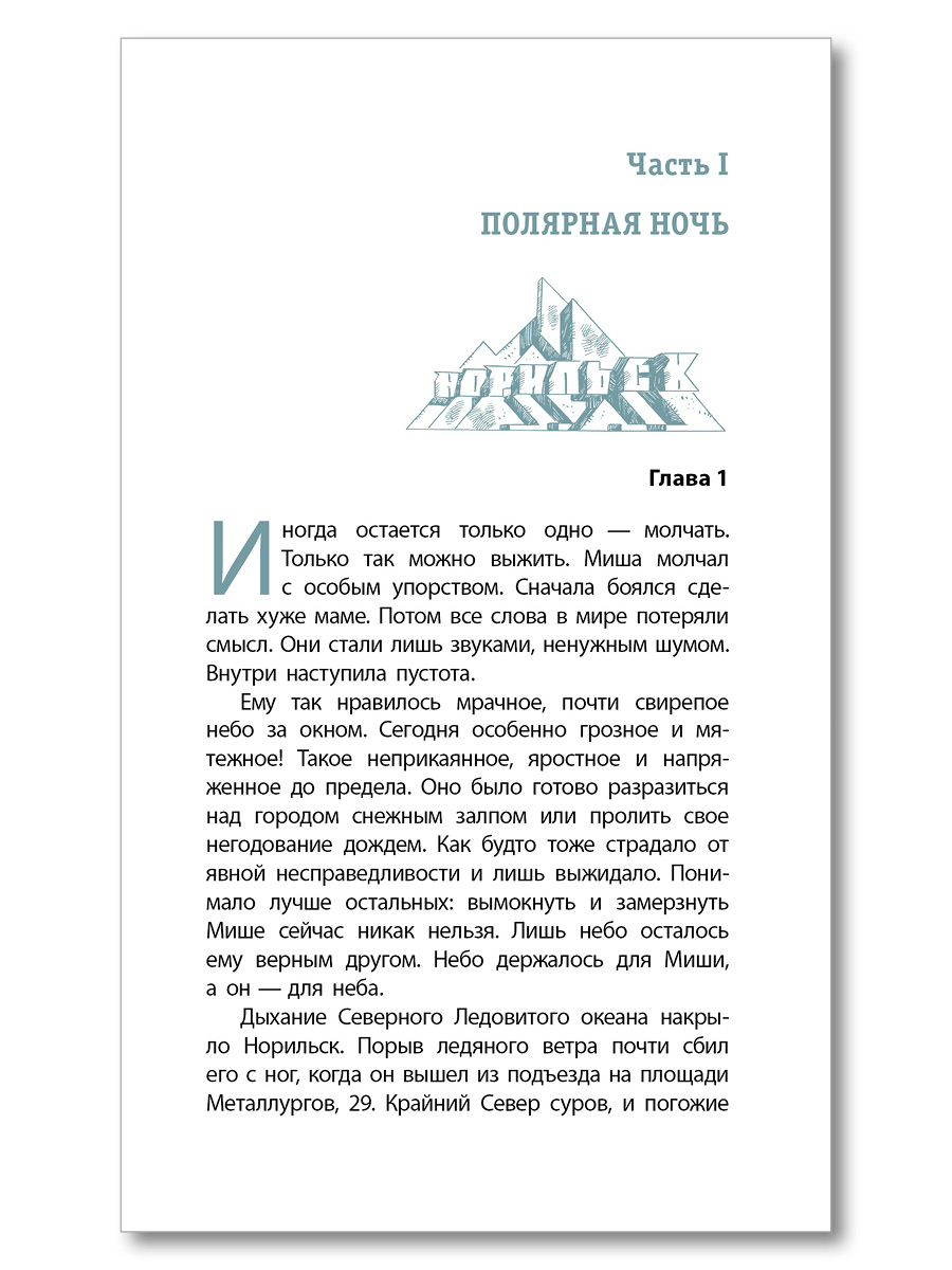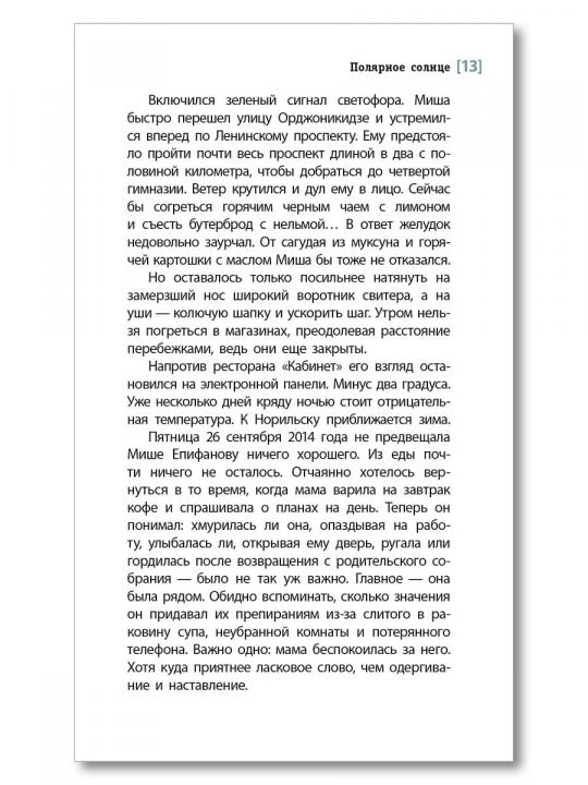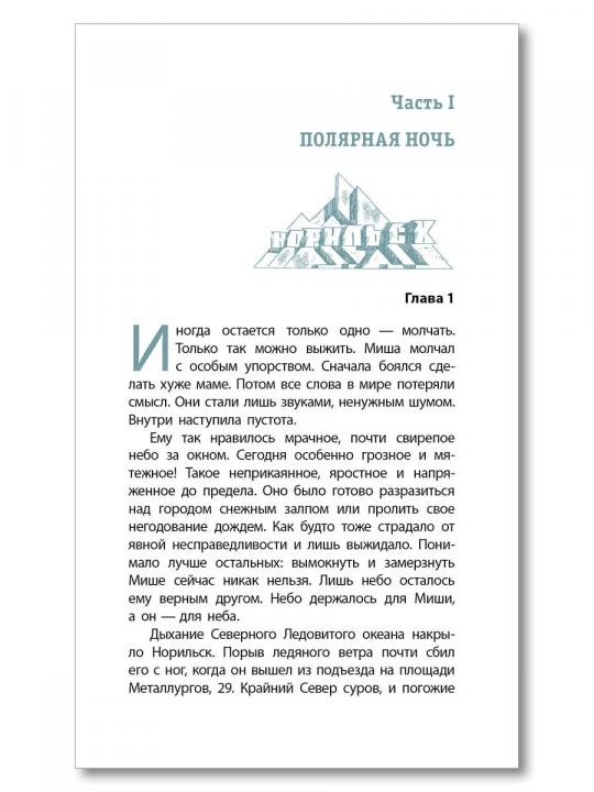 (12+) В самом северном городе мира Норильске климат суров. И жизнь не делает поблажек, даже если ты еще вроде бы ребенок. Мише не исполнилось и четырнадцати лет, но обстоятельства складываются так, что ему самому приходится думать о заработке, еде, теплой одежде. Как же, оказывается, раньше все было легко и просто! А теперь даже не у кого попросить помощи, и так тяжело делать вид, что у тебя по-прежнему всё в порядке.