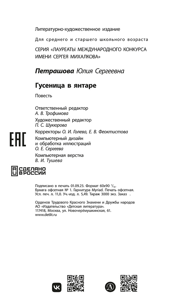 ЛМК Петрашова. Гусеница в янтаре