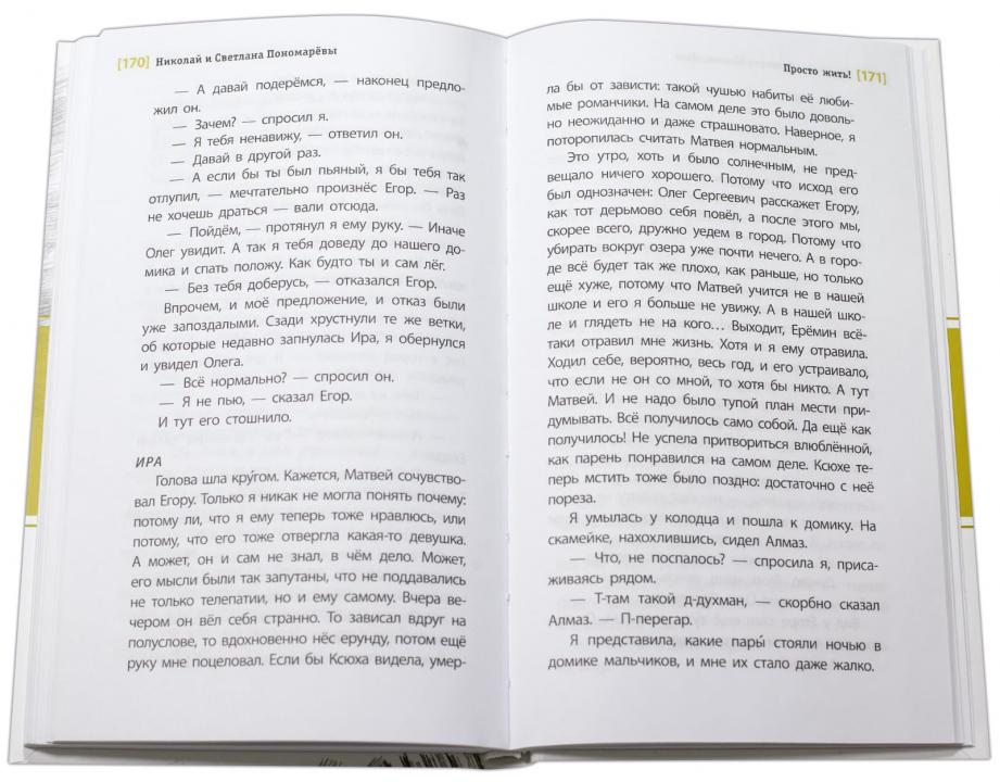 (12+) У 15-летних Иры и Матвея лето не задалось с самого начала. Ира пребывает в тоске из-за развода родителей, Матвей — в депрессии из-за ссоры с любимой девушкой. Ира готова сбежать из дома, чтобы не слышать взаимных родительских упрёков и оскорблений, Матвей всерьёз подумывает свести счёты с жизнью. И оба убеждены, что мир устроен неправильно и, кроме боли и пустоты, их в будущем ничего не ждёт. Обозлившись на весь белый свет, ребята ещё не знают, что всего через несколько дней у них появятся новые друзья, придёт настоящая любовь, а с ними вернутся доверие и добрый настрой к миру. И всё это благодаря неделе, проведённой в заброшенном лагере на берегу озера. Повесть стала лауреатом III Конкурса имени С. Михалкова под первоначальным названием «Вы существуете». Для среднего и старшего школьного возраста.