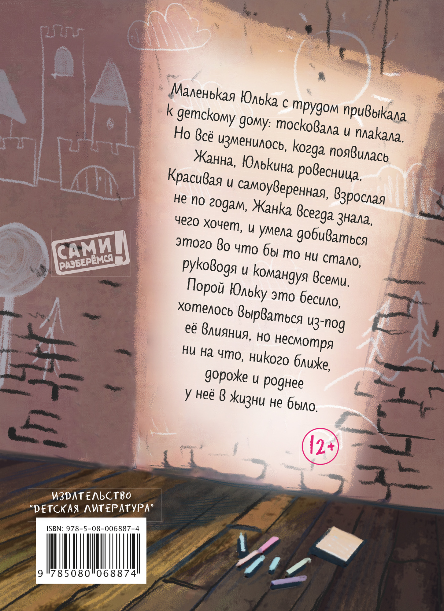 (12+) Повесть о двух девчонках из детского дома. Они подружки, обе не без дарования, играют в школьных спектаклях, но при этом совершенно разные — и внешне, и по характеру. Жанна — яркая, самоуверенная, с броской внешностью и кучей поклонников. Юля на ее фоне — тихая невзрачная дурнушка, которая смотрит Жанне в рот и не сделает шагу без ее одобрения. Они взрослеют, поступают в театральное училище, и жизнь ставит перед ними свои вопросы, решить которые, как в детстве, уже не получается. Для среднего и старшего школьного возраста.