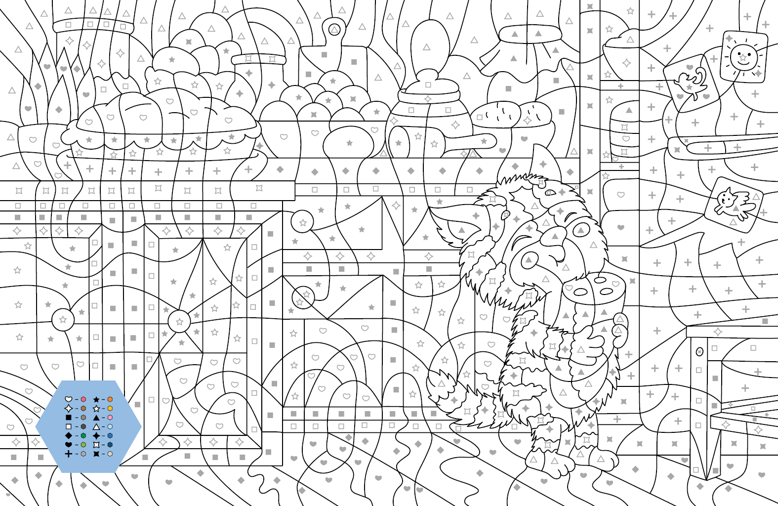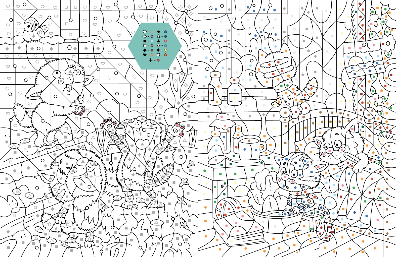 (0+) За синими котами Рины Зенюк следят во всём мире! А котята Федя, Вася и Тося стали настоящими любимцами: каждый день они находят новые приключения, к которым уж очень хочется присоединиться! Поэтому предлагаем окунуться в творческий процесс с любимыми персонажами. Перед вами увлекательные раскраски по номерам, цветам, символам. Запаситесь цветными карандашами и любопытством! Выполнив задание на каждой странице, у вас получится забавный сюжет. Отличный вариант для совместного досуга с детьми!