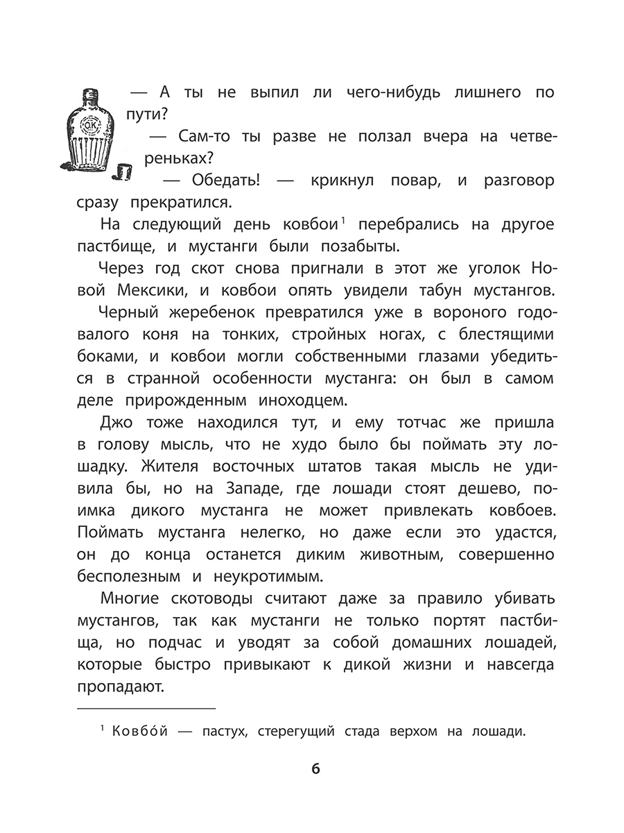 (12+) В сборник рассказов "Мустанг-иноходец" входит три произведения писателя – про красивого и грациозного мустанга, который больше всего в жизни любил свободу; про охотника, мечтающего заполучить большого благородного оленя и про кролика Рваное Ушко, чья жизнь была полна приключений и опасностей. Произведения выдающегося канадского писателя, художника-анималиста Эрнеста Сетона-Томпсона, полюбились нескольким поколениям читателей по всему миру. Книга серии "Рассказы о животных" издана с надёжным тканевым корешком, который традиционно использовался в советском книгоиздании.
