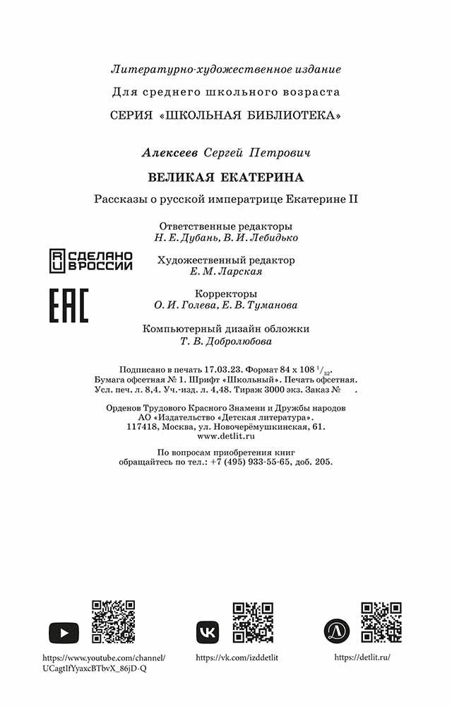(12+) В книге рассказывается об императрице Екатерине Великой, стоявшей во главе Российского государства во второй половине XVIII века. Екатерина II, женщина умная и деятельная, много сделала для процветания страны и народа. Для среднего школьного возраста.