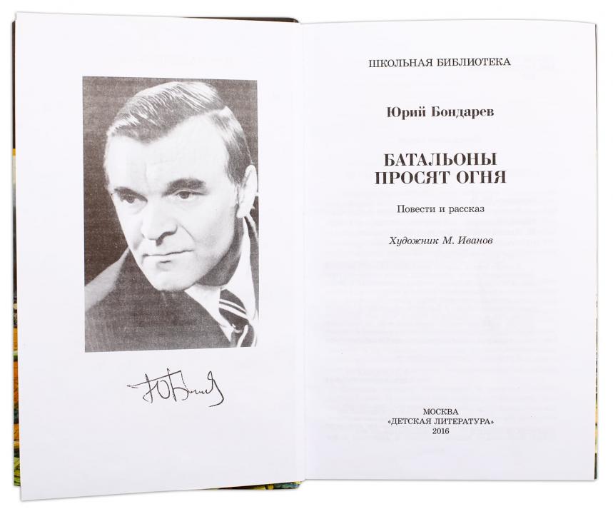(12+) В книгу вошли широко известные повести о Великой Отечественной войне: «Батальоны просят огня» — о героизме и мужестве бойцов и командиров, первыми переправившихся на правый берег Днепра и ведущих там с фашистами трудный, неравный бой, и «Последние залпы» — о боях накануне победы, в Карпатах, на границе с Чехословакией, где артиллерийская батарея получает приказ задержать немецкие танки, прорывающиеся из советского окружения. Также в книге помещен рассказ «Простите нас», ставящий перед читателем важные нравственные вопросы. Роман включен в перечень "100 книг по истории, культуре и литературе народов Российской Федерации, рекомендуемые школьникам к самостоятельному прочтению". Для старшего школьного возраста.