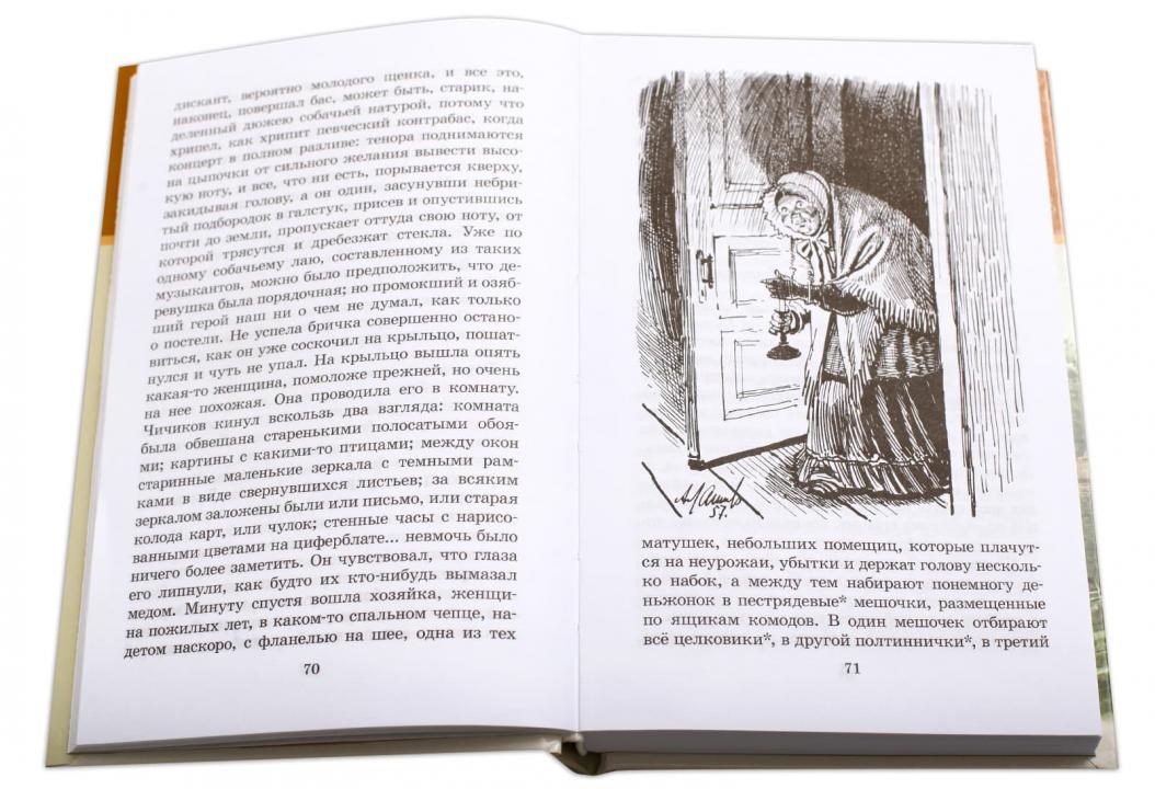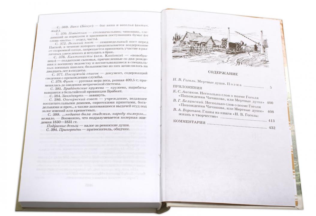 (12+) В книгу вошли бессмертная поэма великого русского писателя Н. В. Гоголя «Мертвые души» и статьи замечательных русских критиков К. С. Аксакова и В. Г. Белинского, а также очерки известного современного литературоведа В. А. Воропаева. Иллюстрации к поэме, помещенные в книге, созданы в середине XIX века основоположником российской жанровой иллюстрации А. А. Агиным, гравированы на дереве его сотрудником Е. Е. Бернардским. Для старшего школьного возраста.