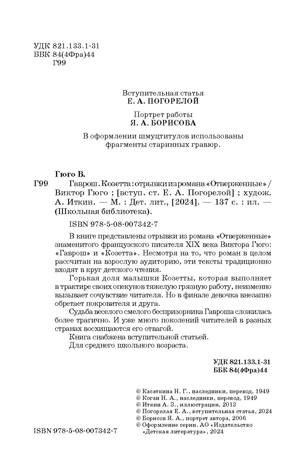 (12+) В книге представлены отрывки из романа «Отверженные» французского писателя Виктора Гюго (1802–1885): «Гаврош» и «Козетта».