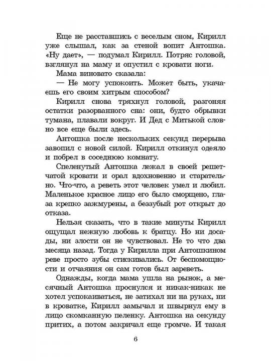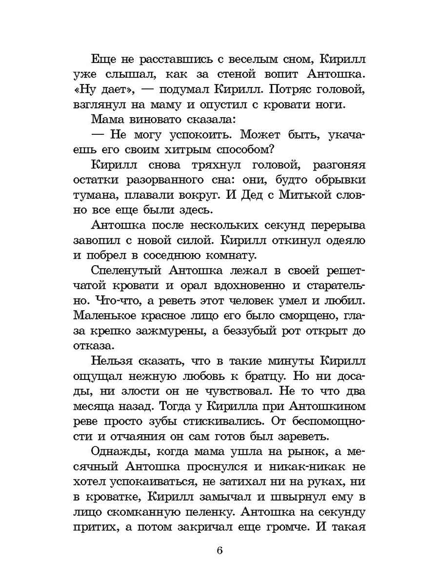 (12+) Новый учебный год начался у семиклассника Кирилла Векшина с неприятности: его несправедливо обвинили в краже денег у преподавателя. Но Кирилл сумел найти виновного, понять и оправдать его, не побоявшись вступить в открытый конфликт со школьным начальством и в прямое столкновение с дворовым «королем» Дыбой, отбирающим деньги у школьников. Кириллу не страшно, потому что он уверен в себе. Ведь за ним — его семья и друзья по экипажу парусника «Капитан Грант», в строительстве которого он участвовал и за штурвалом которого стоял в шторм. А еще справляться с трудностями ему помогает любимая песня — о совести и чести, долге и достоинстве, вере и верности, под которую, как под колыбельную, так сладко засыпает его трехмесячный братик Антошка. Для среднего школьного возраста.