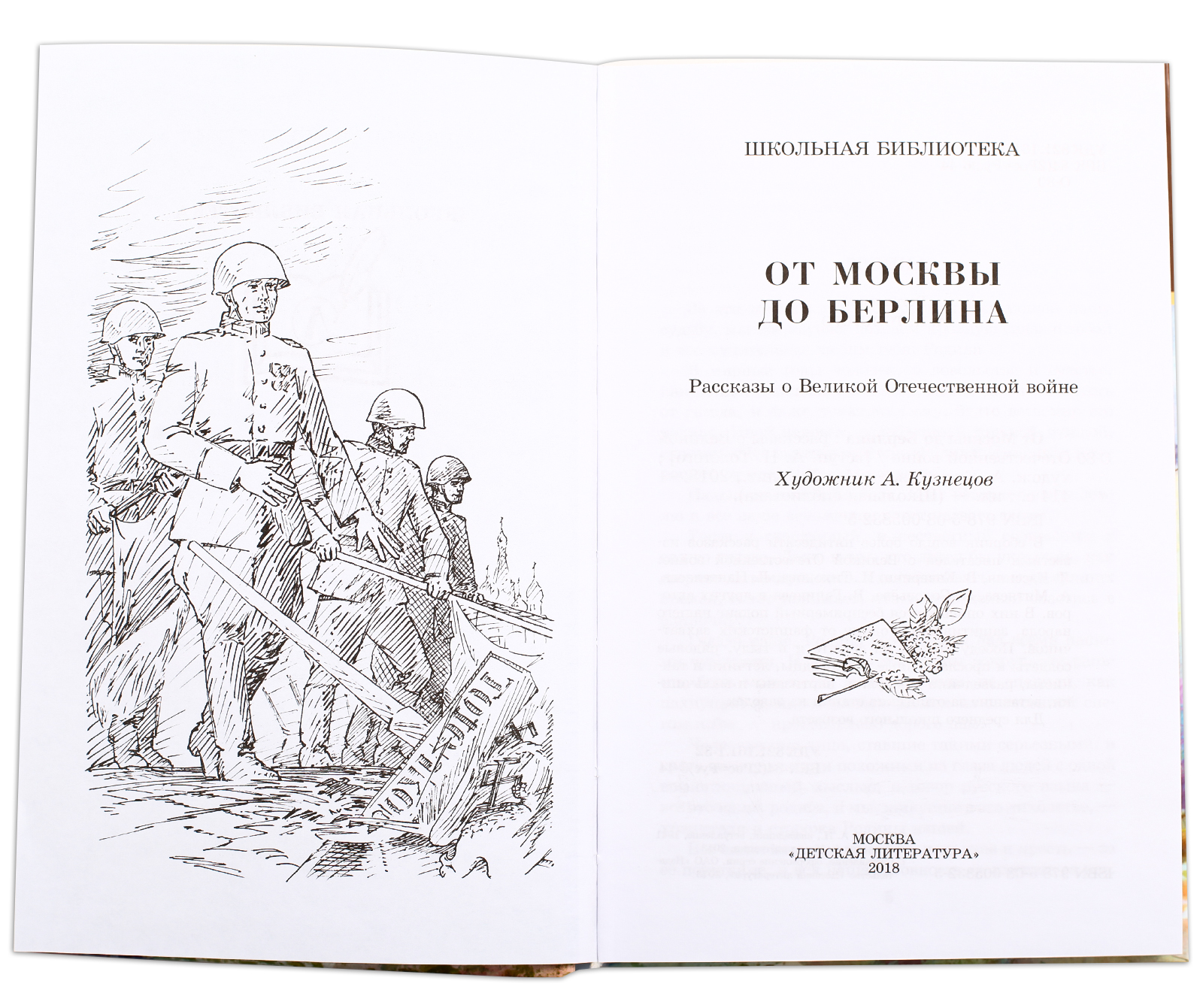 (12+) В сборник вошли более пятидесяти рассказов известных писателей: Л. Кассиля, В. Каверина, Н. Тихонова, Л. Пантелеева, А. Митяева, Л. Соловьева, В. Ганичева и других авторов — о Великой Отечественной войне. В них описывается беспримерный подвиг нашего народа, защитившего Родину от фашистских захватчиков. Победу ковали на фронте и в тылу, рядовые солдаты и прославленные полководцы, лётчики и танкисты, разведчики и моряки, партизаны и мальчишки, вставшие за отцовские станки на заводах. Для среднего школьного возраста.