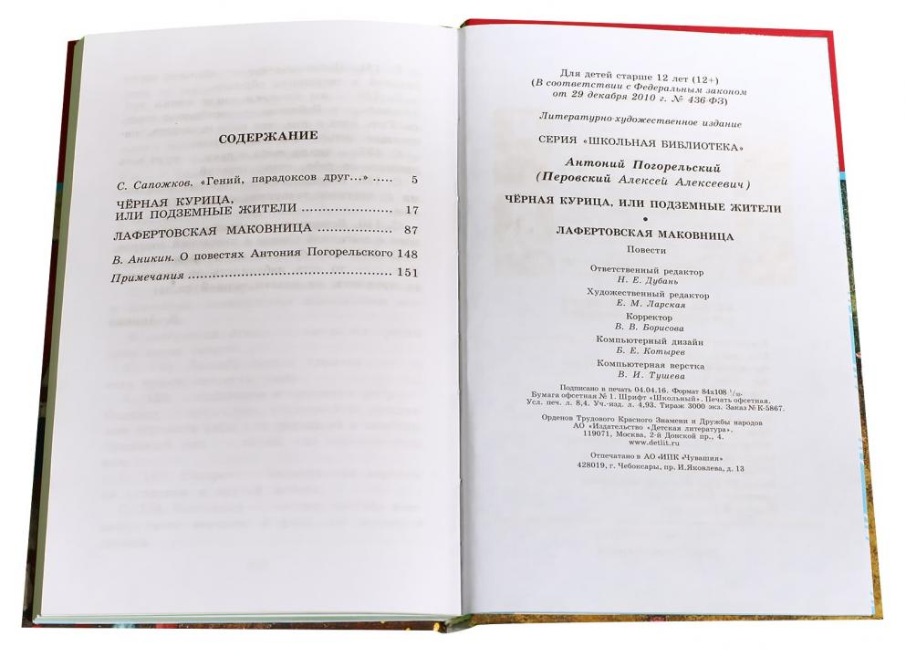 (6+) В книгу вошли две знаменитые повести "Черная курица, или Подземные жители" и "Лафертовская Маковница". Для среднего школьного возраста