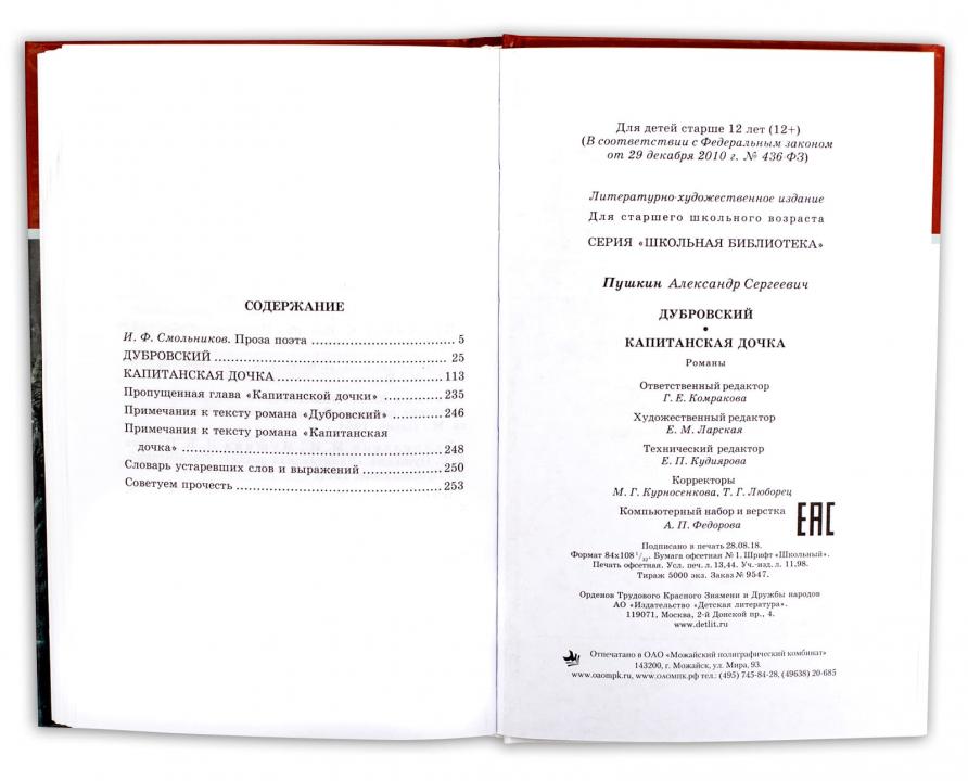 ШБ Пушкин. Дубровский, Капитанская дочка