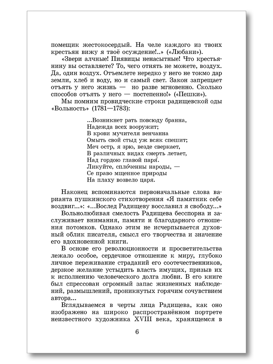 (12+) Книга А. Н. Радищева «Путешествие из Петербурга в Москву» — это удивительная педагогическая поэма XVIII века, посвященная воспитанию человеческого достоинства. Его книга не только энциклопедия путевых наблюдений, в которых, как в капле воды, отразилась современная ему Россия, но и дерзкое откровение образованного ума и прозрения горячего сердца, исполненного любви к человечеству.
