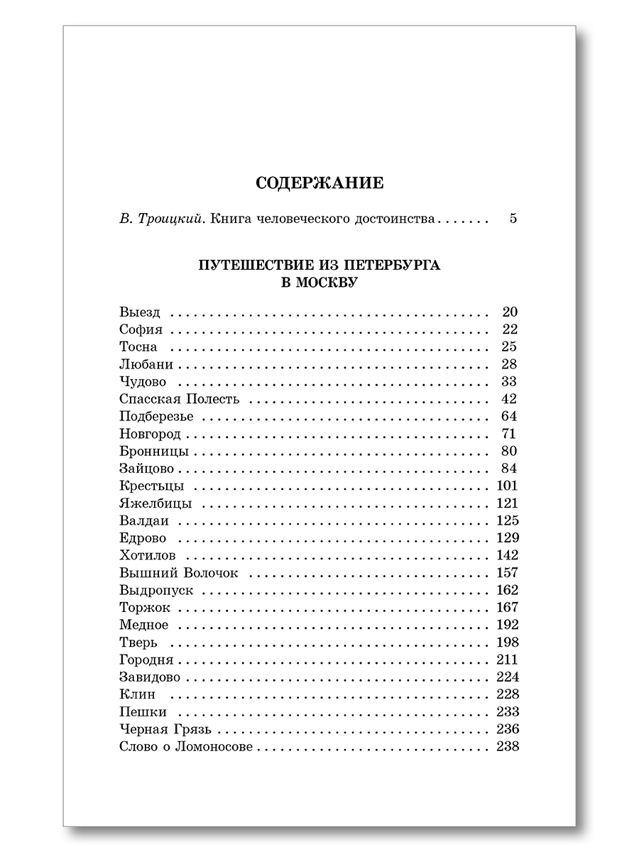 - Если вы любите автомобильные путешествия, возьмите книгу Радищева и повторите его знаменитое "Путешествие из Санкт-Петербурга в Москву" или обратно! Используйте книгу как путеводитель и сравните, что изменилось в названиях городов, в укладе жизни, что нынче подают в придорожных трактирах и ресторациях!