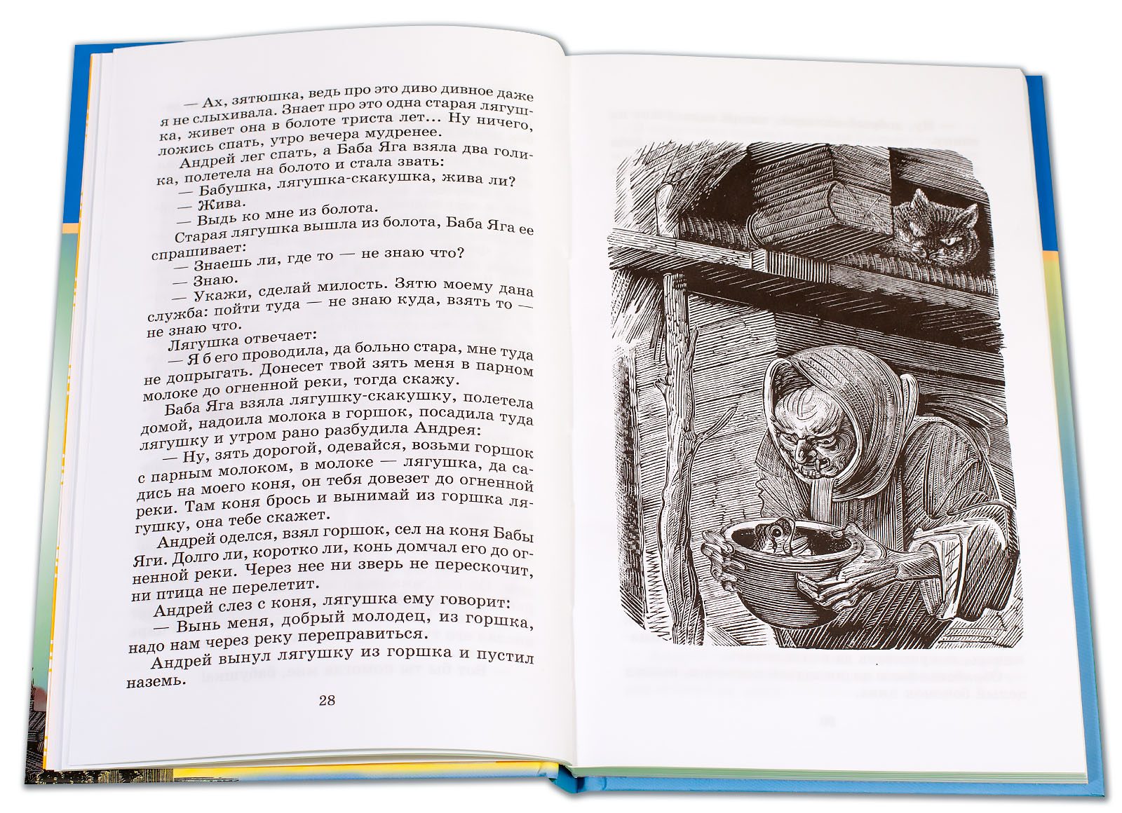 (6+) В книгу входят любимые детьми многих поколений русские народные сказки: волшебные ("Иван-царевич и серый волк", "Царевна-лягушка", "Гуси-лебеди" и др.), о животных ("Лиса и волк", "Теремок", "Репка" и др.), бытовые ("Лутонюшка", "Кашица из топора", "Жена-спорщица" и др.). Для среднего школьного возраста.