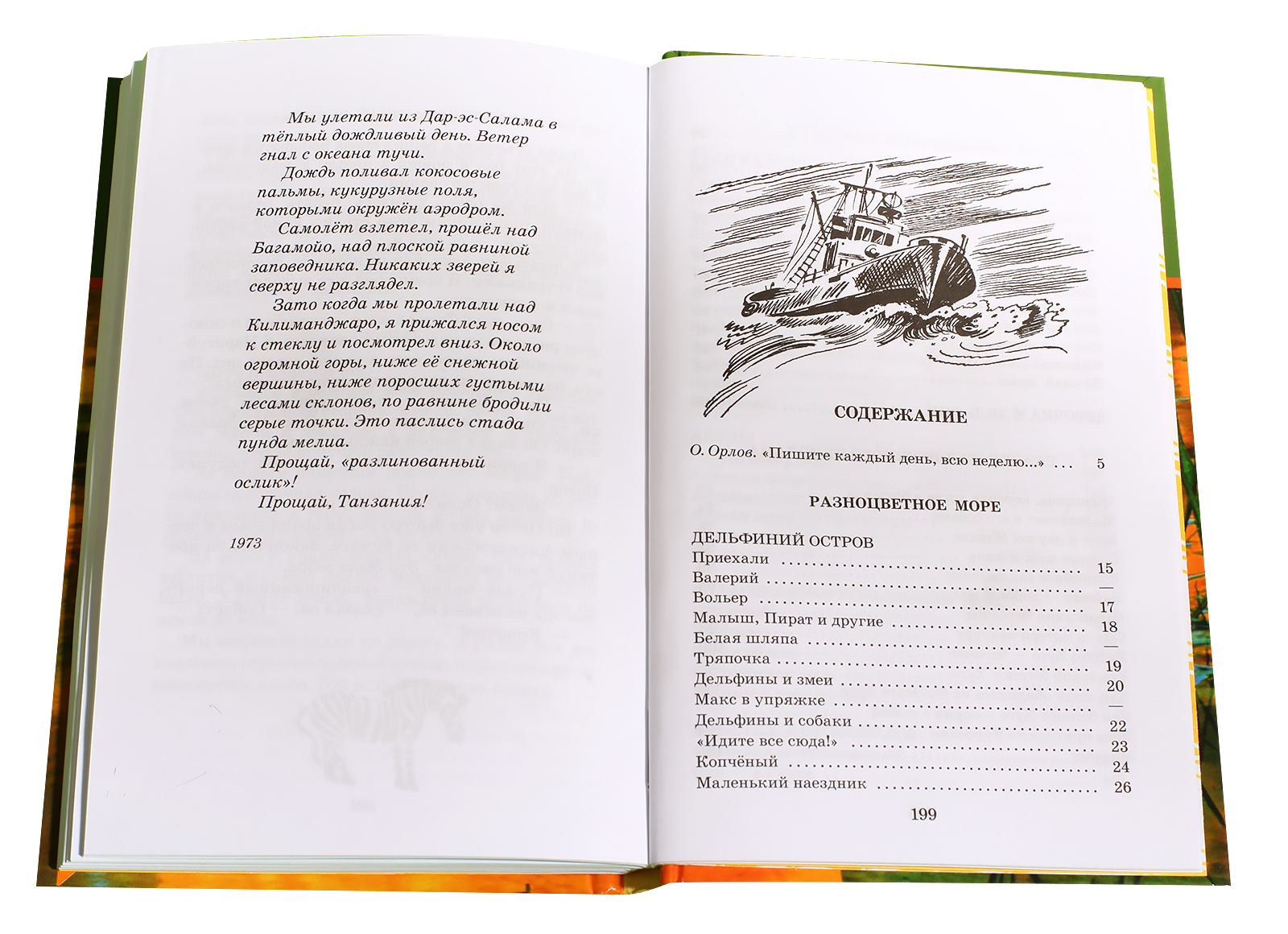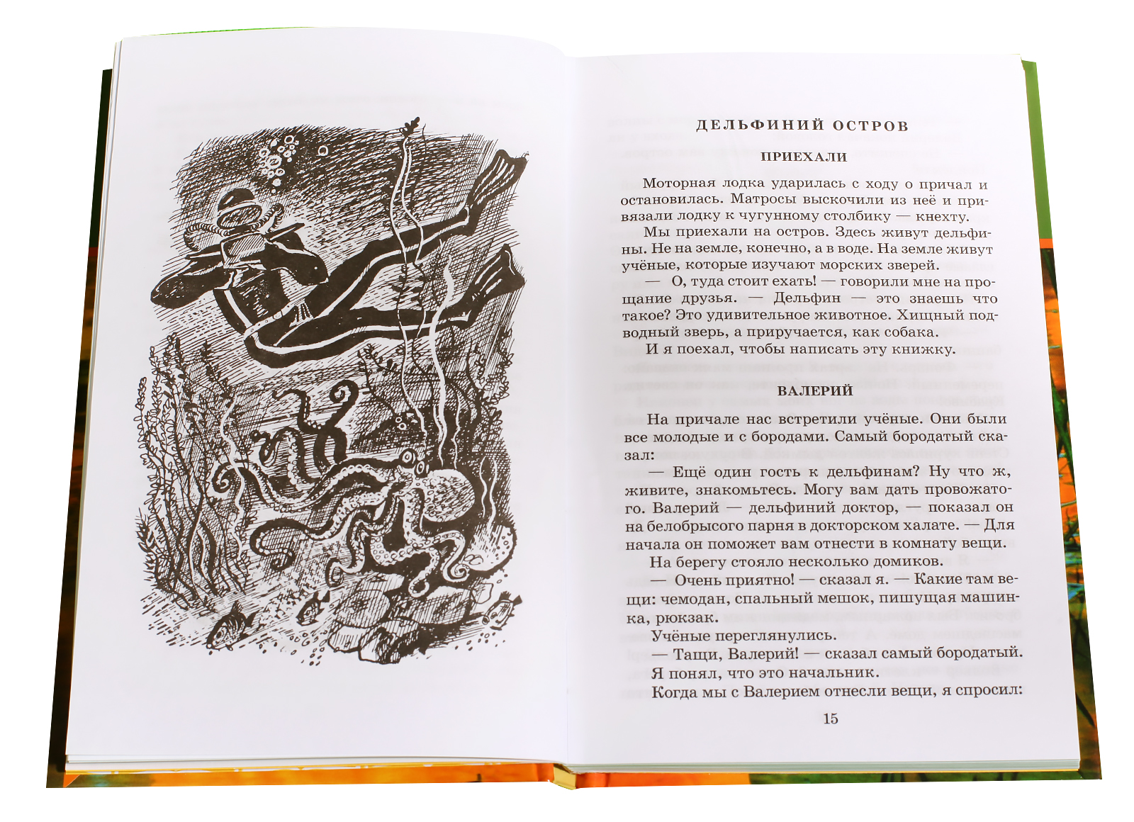 (6+) В книгу входят лучшие произведения писателя ("Разноцветное море", "Дельфиний остров", "Девочка и дельфин", "Что я видел в Индии", "Что я видел в Танзании" и др.), рассказывающие о жизни животных разных стран.