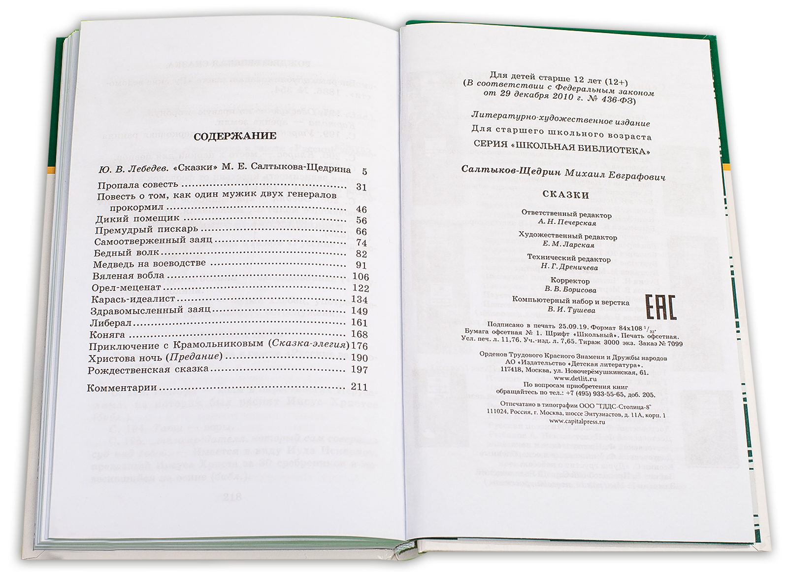 (12+) В книгу вошли избранные сказки великого русского писателя М. Е. Салтыкова-Щедрина: "Повесть о том, как один мужик двух генералов прокормил", "Премудрый пискарь", "Медведь на воеводстве", "Карась-идеалист", "Коняга" и другие. Для среднего и старшего школьного возраста.