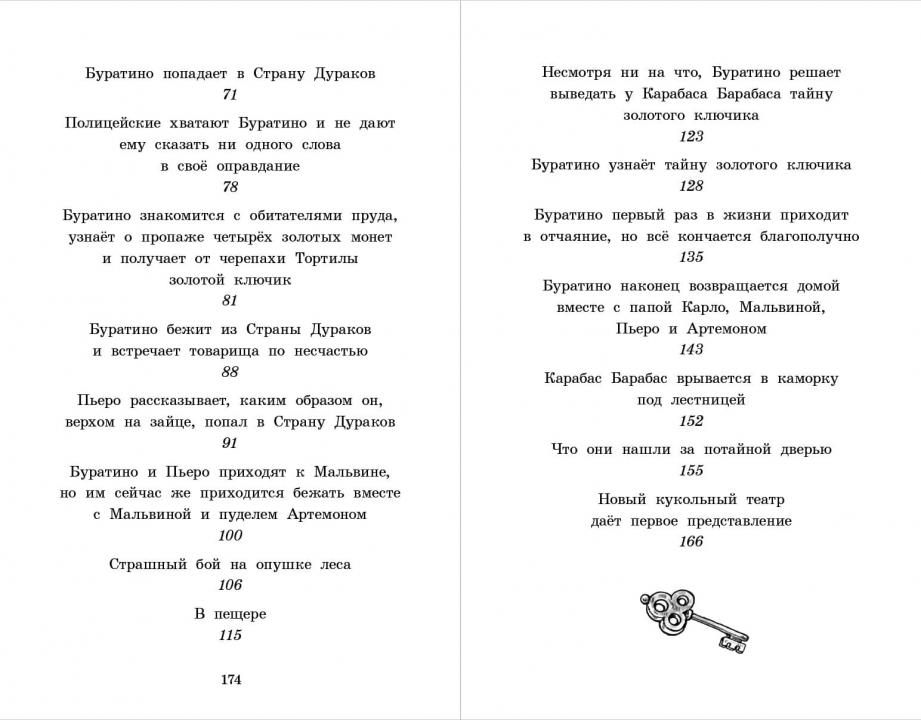 (6+) Любимая детьми и взрослыми сказочная повесть о приключениях деревянного озорника Буратино и тайне золотого ключика. Книга с предисловием об истории создания романа-сказки, его отличиях от книги К. Коллоди. Для младшего школьного возраста.