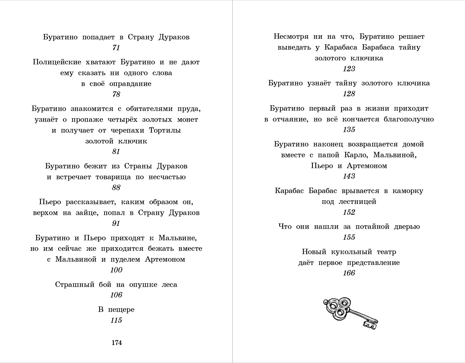 (6+) Любимая детьми и взрослыми сказочная повесть о приключениях деревянного озорника Буратино и тайне золотого ключика. Книга с предисловием об истории создания романа-сказки, его отличиях от книги К. Коллоди. Для младшего школьного возраста.