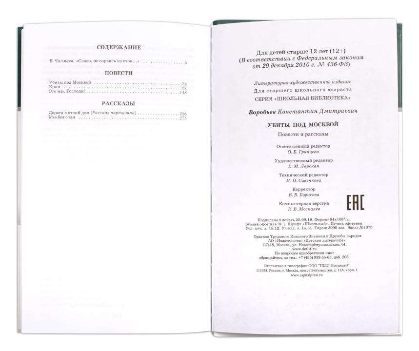 (12+) В сборник писателя-фронтовика К. Воробьева вошли широко известные повести "Убиты под Москвой", "Крик", "Это мы, Господи!" и рассказы "Дорога в отчий дом" и "Уха без соли". Для старшего школьного возраста.