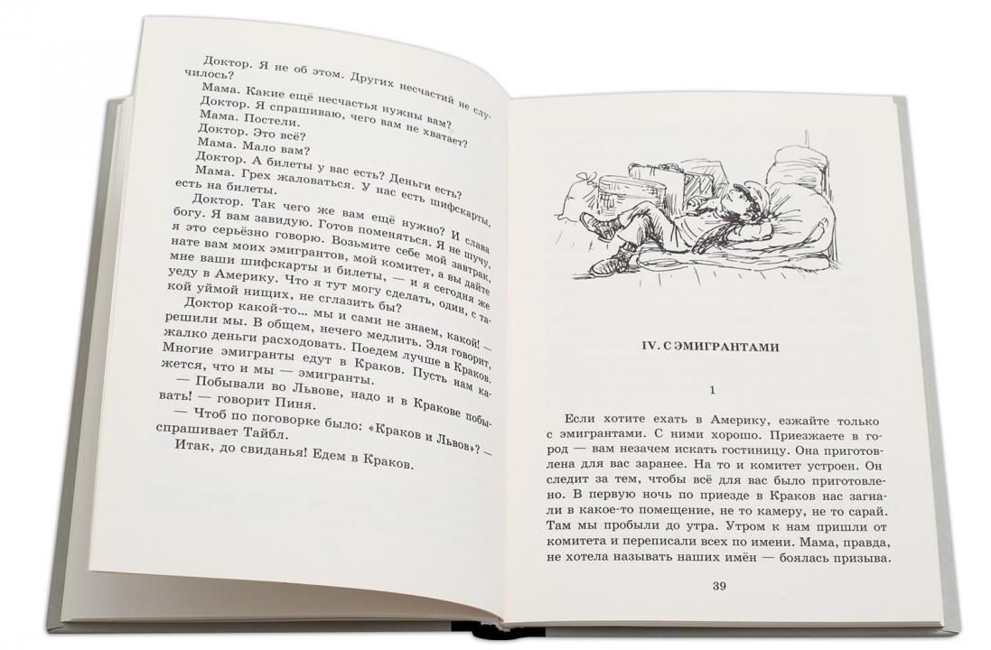 (6+) Во второй части повести герой вместе с семьей, на пути в Америку, скитается по всей Европе. Вместе с ним читатель посетит Львов, Краков, Вену, Антверпен, Лондон. Книга серии "Пятый переплет" издана с надёжным тканевым корешком, который традиционно использовался в советском книгоиздании.