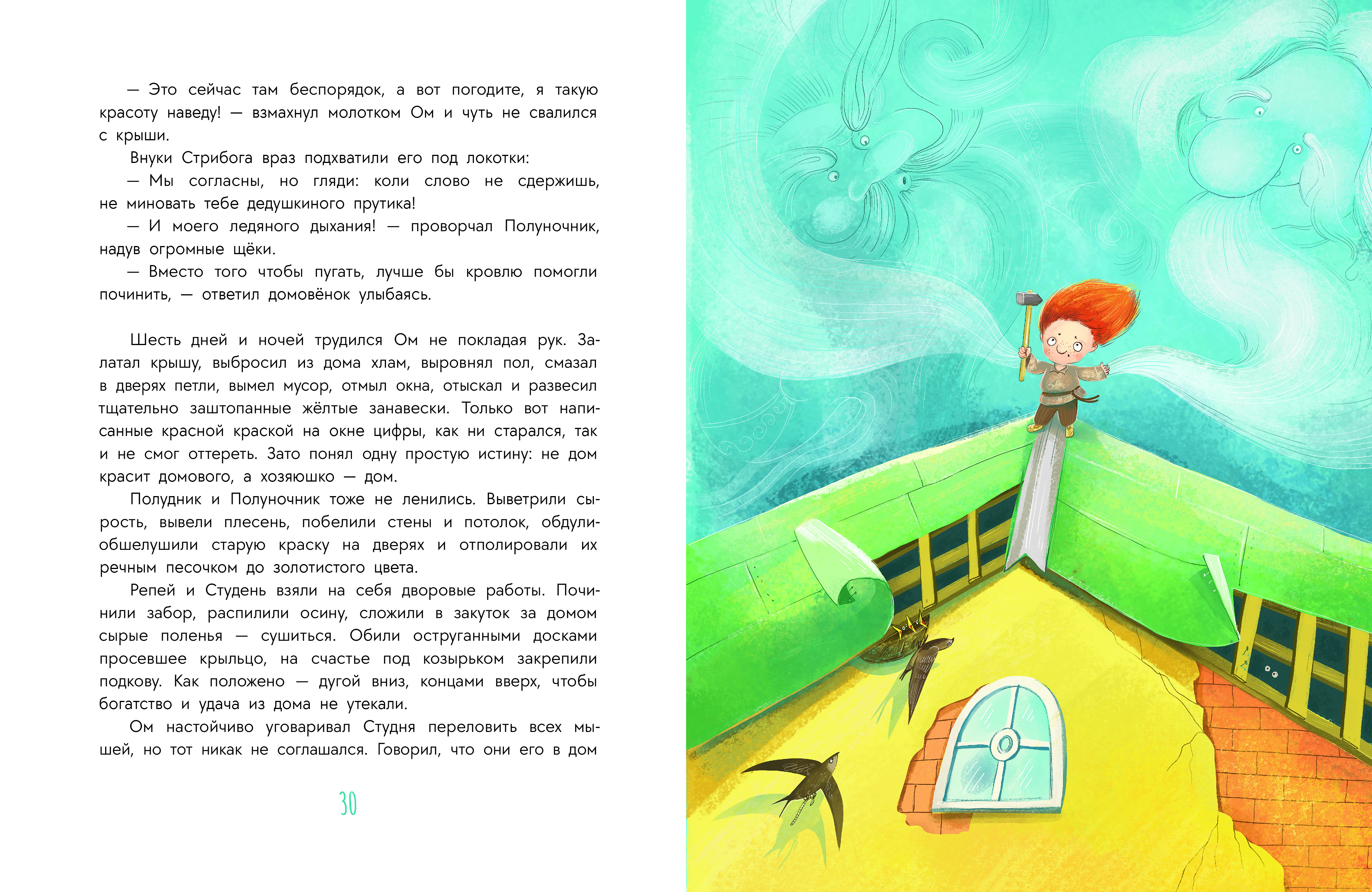 (6+) Вы ещё не знакомы с домовёнком Омом? Маленький такой, нос в конопушках, а в соломенно-рыжих волосах прячутся божьи коровки. Когда Ом вырастет, звать его будут по-взрослому, уважительно — Громом. Но пока он только окончил школу домоводства и обживается в своём первом доме. Ах, как это, оказывается, непросто — вести хозяйство! Скучать не приходится, если тебе в этом помогают дворовый Репейка, братья-ветры, белоснежный кот Студень, мыши и девушка с загадочным именем Фира.