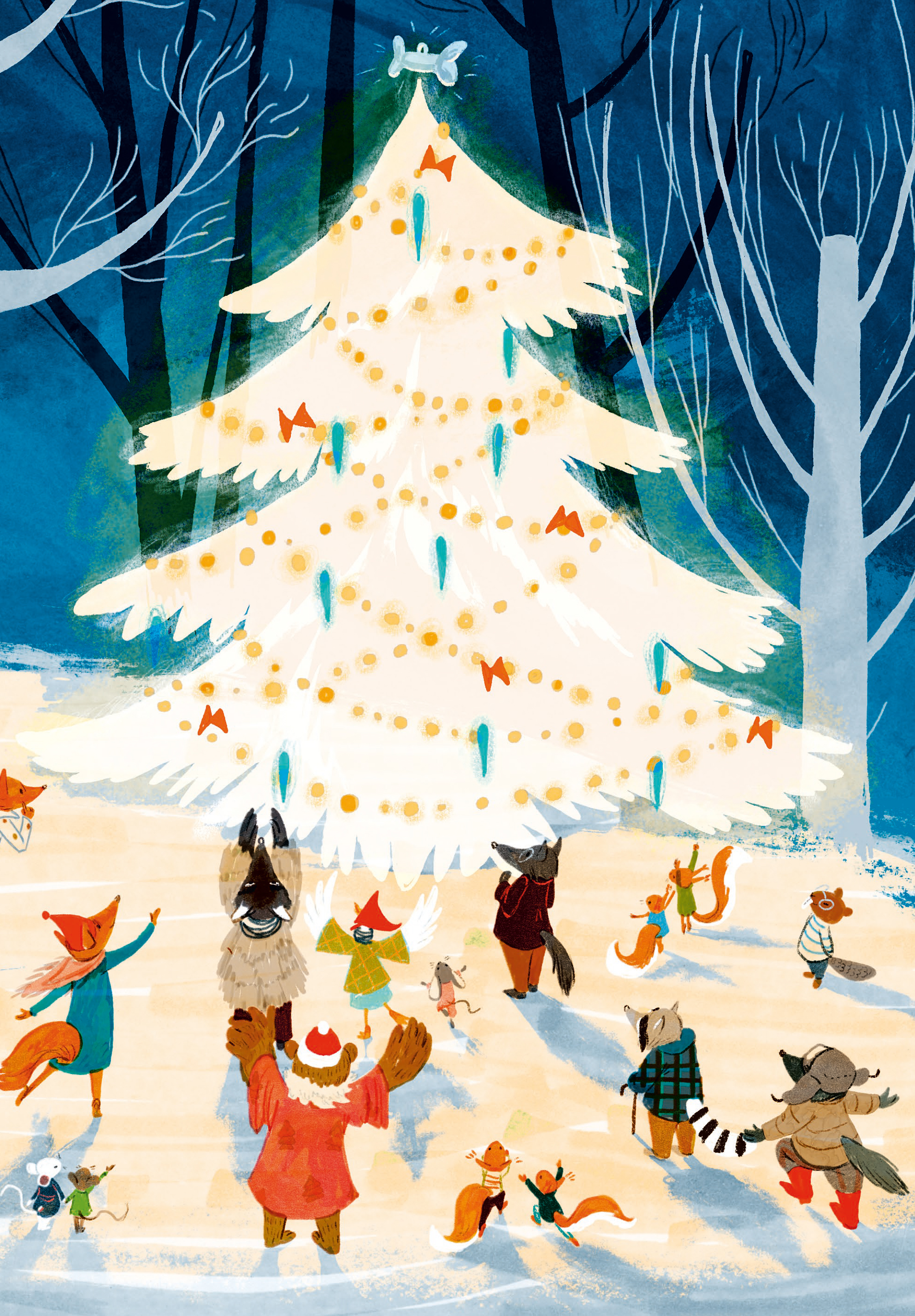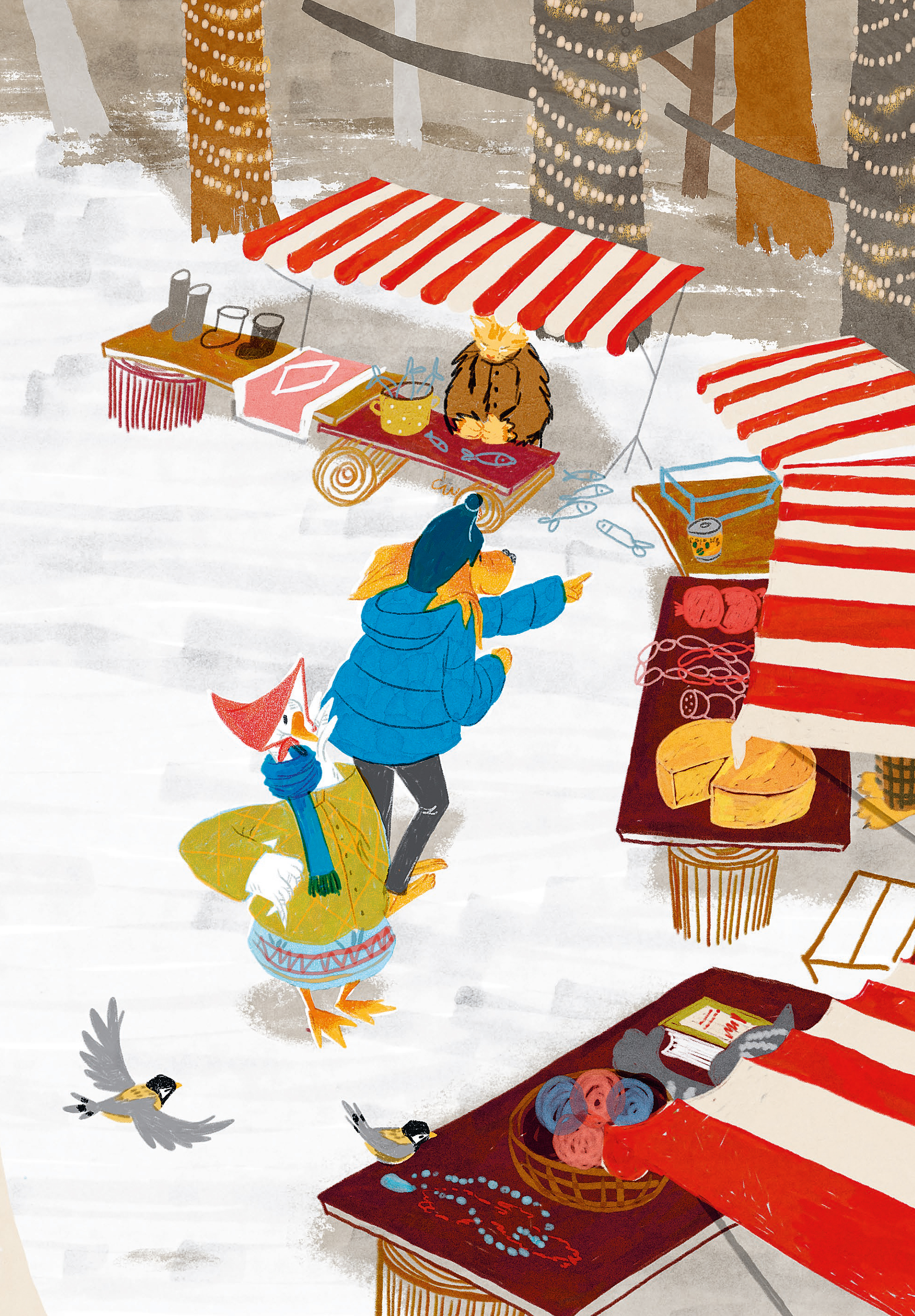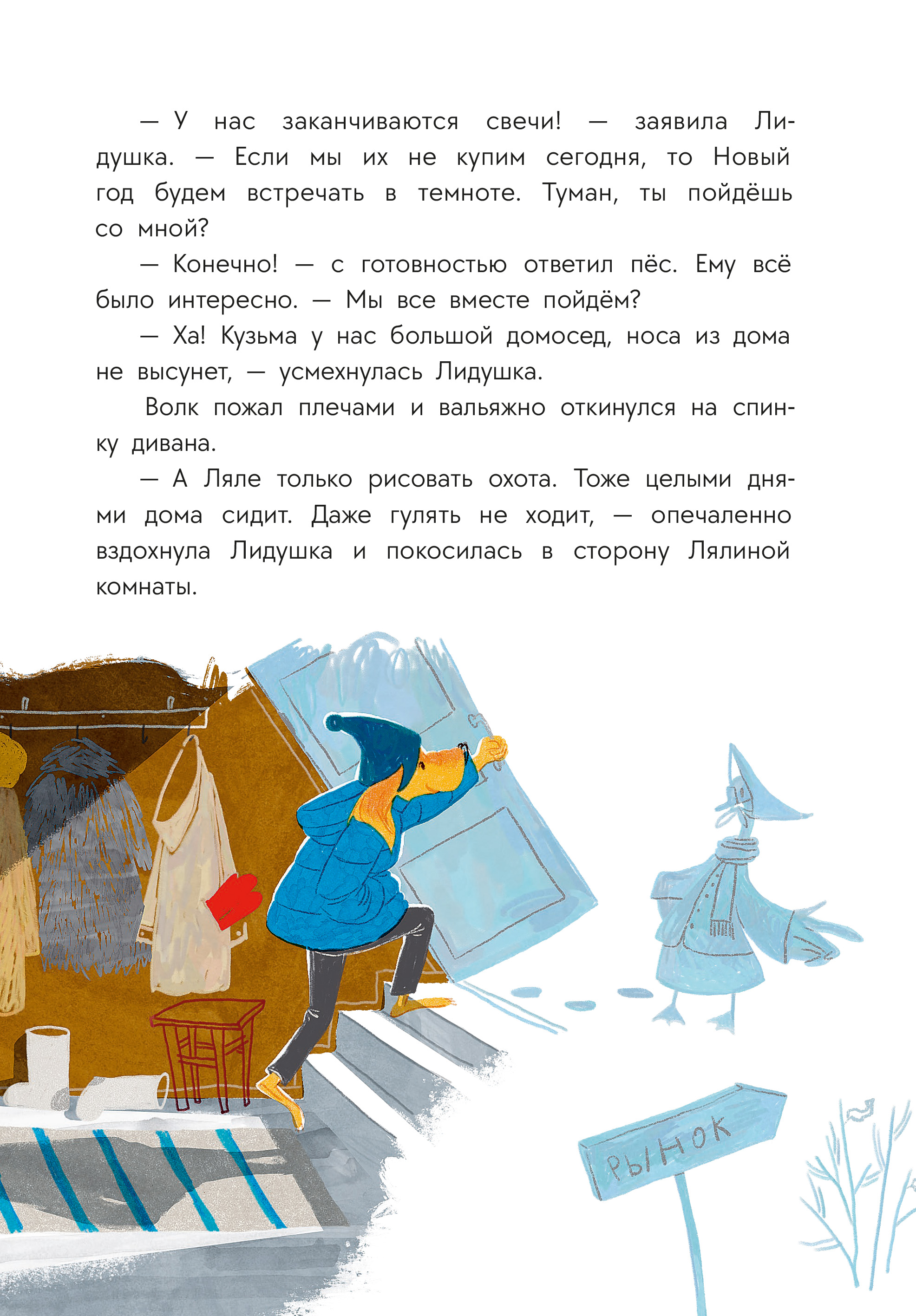 - Уютные иллюстрации передают праздничное настроение.