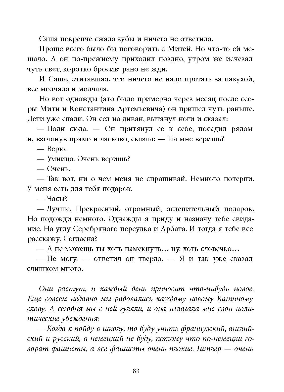 (12+) Повесть "Любимая улица" - вторая часть дилогии (первая часть называется "Семейное счастье") известной писательницы, журналистки и педагога Фриды Вигдоровой (1915-1965). Действие повести происходит в период от 1 сентября 1944 года до июня 1954. Её герои изменились - опыт войны, разлук, потерь сделал их взрослее, вдумчивее, одновременно и добрее, и твёрже. Глазами главных героев - медсестры Саши, мимо которой не проходит, конечно, печально знаменитое "дело врачей", и серьёзного, честного журналиста Поливанова - мы видим то, что происходит не только в семье, но и в стране: в больнице, в школе, в газете, в деревне. Как и "Семейное счастье", "любимая улица" - это повесть о порядочных людях, о непростой жизни и о человеческих отношениях.