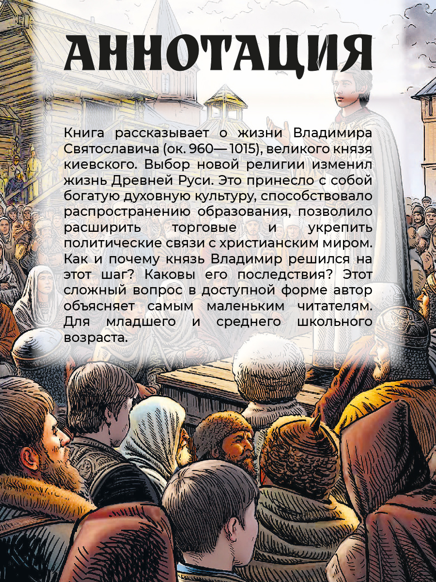 (6+) Книга рассказывает о жизни Владимира Святославича и событии, которое кардинально изменило историю Руси.