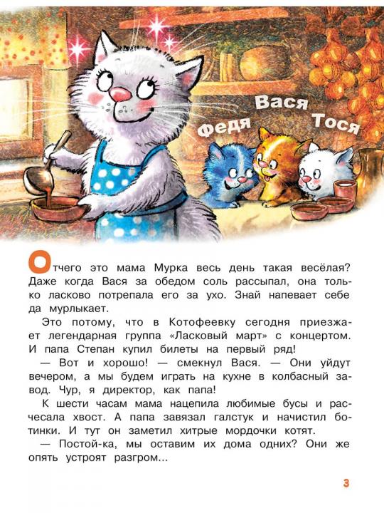 (0+) В Котофеевку приезжает знаменитая группа «Ласковый март». Вечером папа Степан и мама Мурка отправляются на концерт и обращаются к бабе Бусе с просьбой присмотреть за котятами. Ну, согласитесь, дело житейское. Но только не для Феди, Васи и Тоси: их ждут настоящие приключения!