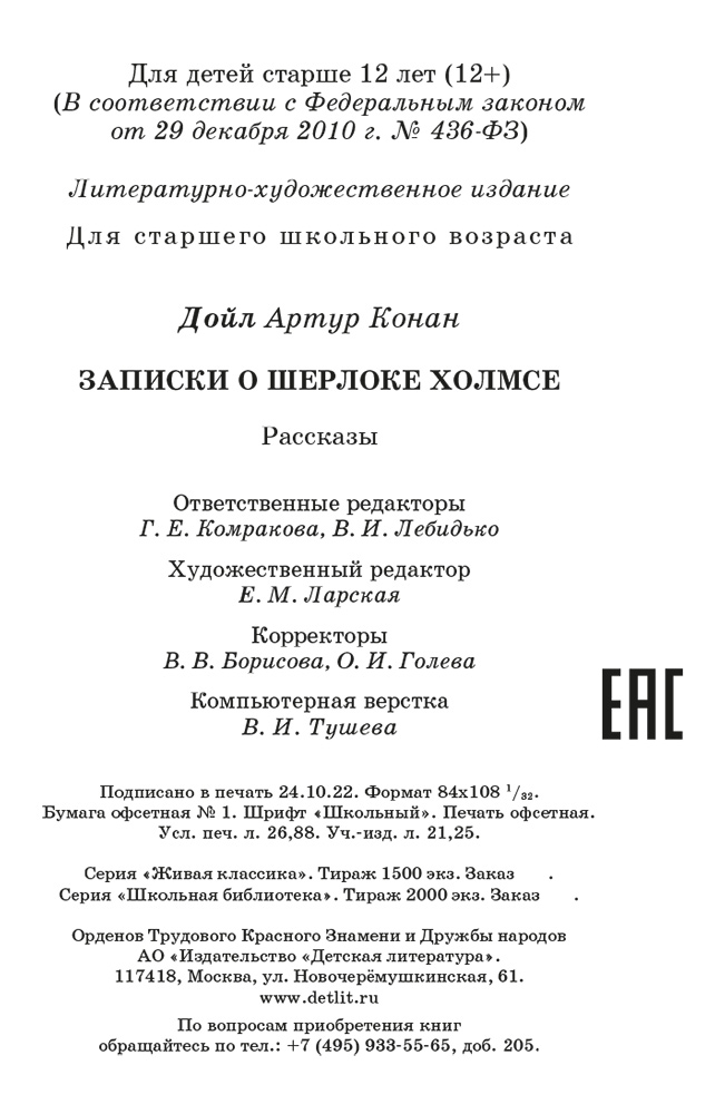 (12+) В книгу вошли рассказы классика английской литературы Артура Конан Дойла о прославленном сыщике Шерлоке Холмсе. Для старшего школьного возраста.